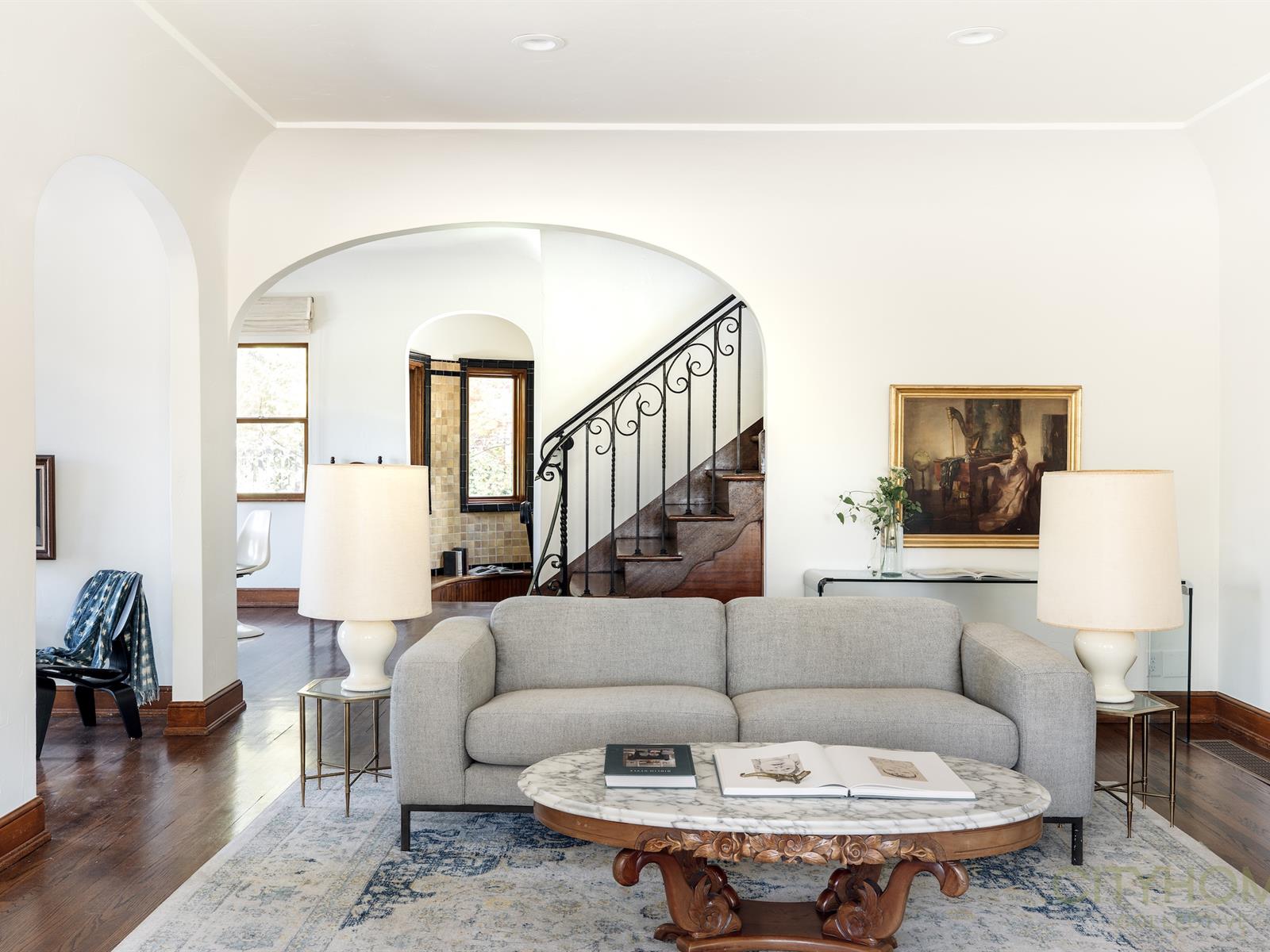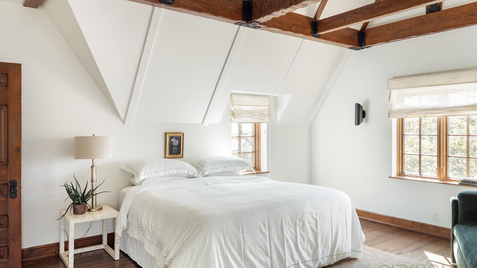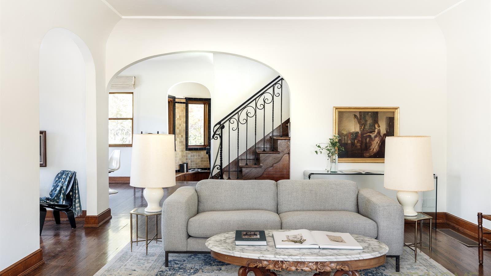 Infused with French Revival influences—stained glass windows, garden doors, exposed beams, the graceful sweep of hardwood stairs, and a kitchen kissed with Parisian flair—every space feels intentional, intimate, and deeply romantic. Meticulous care has preserved its character, while thoughtful updates ensure modern comfort.