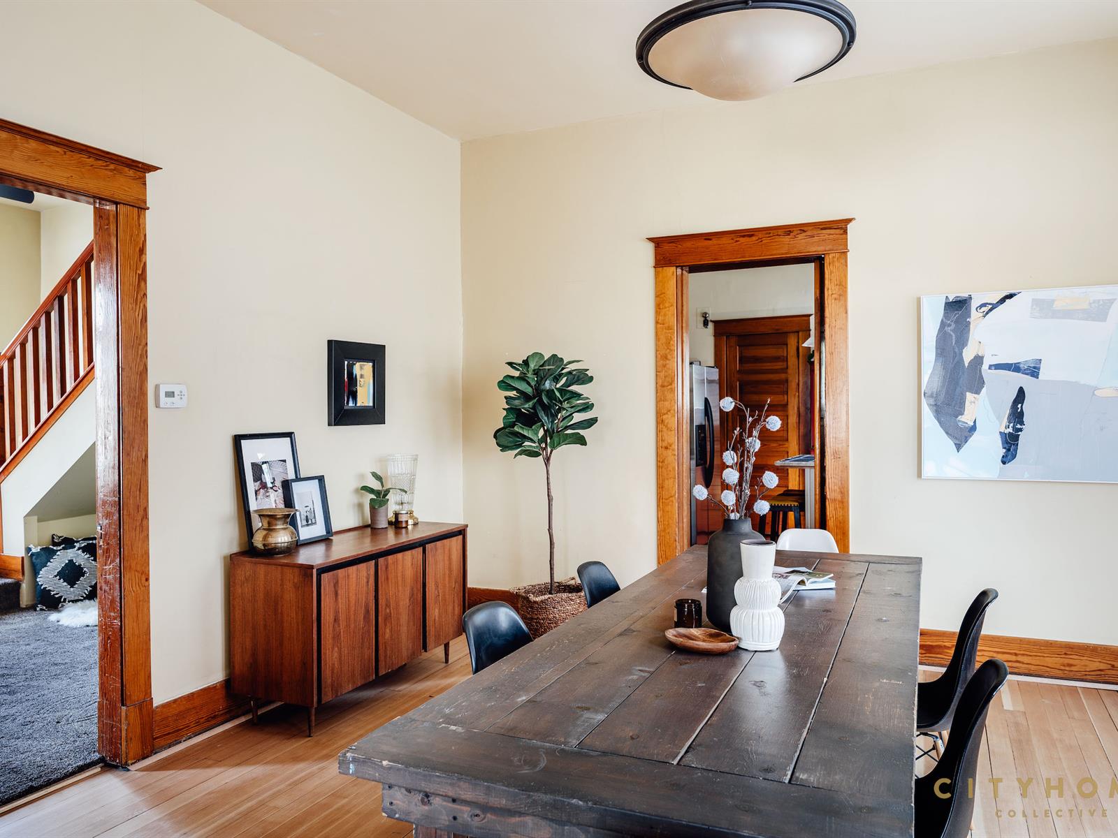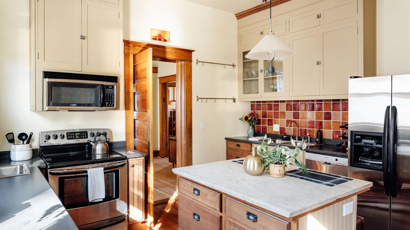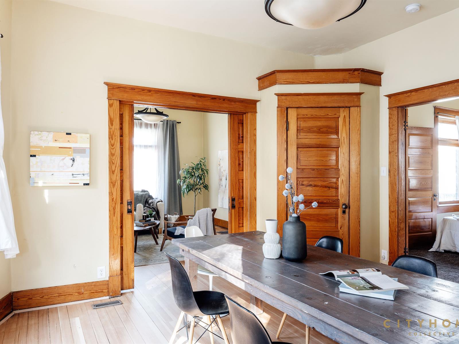 only if you need it that is, as this home already features two bedrooms and two bathrooms, with spacious living and dining areas separated by beautiful wood pocket doors. The updated kitchen fits seamlessly with the overall style of the home, and boasts a large walk-in butler’s pantry with original cabinetry. The updated bathrooms contain modern tile work, with one featuring a clawfoot tub in addition to its stand-up shower.