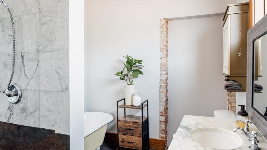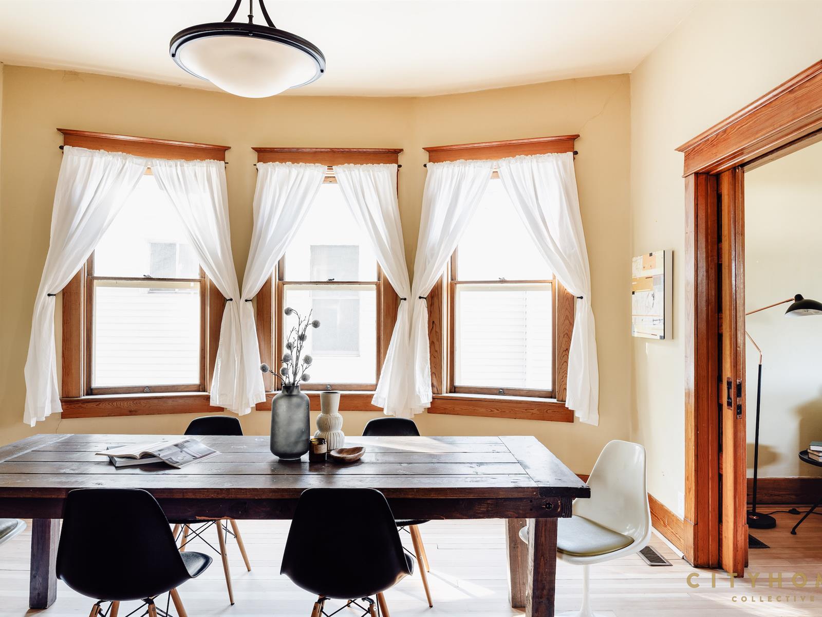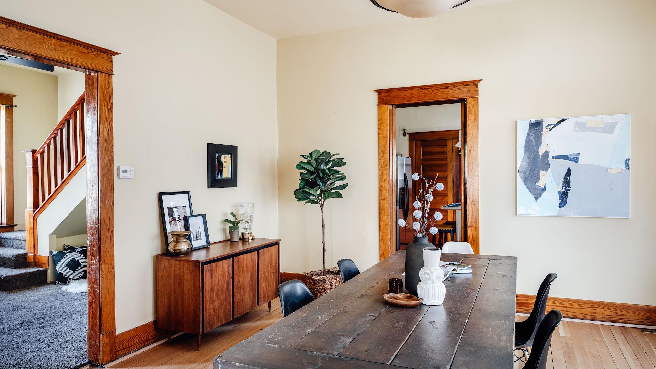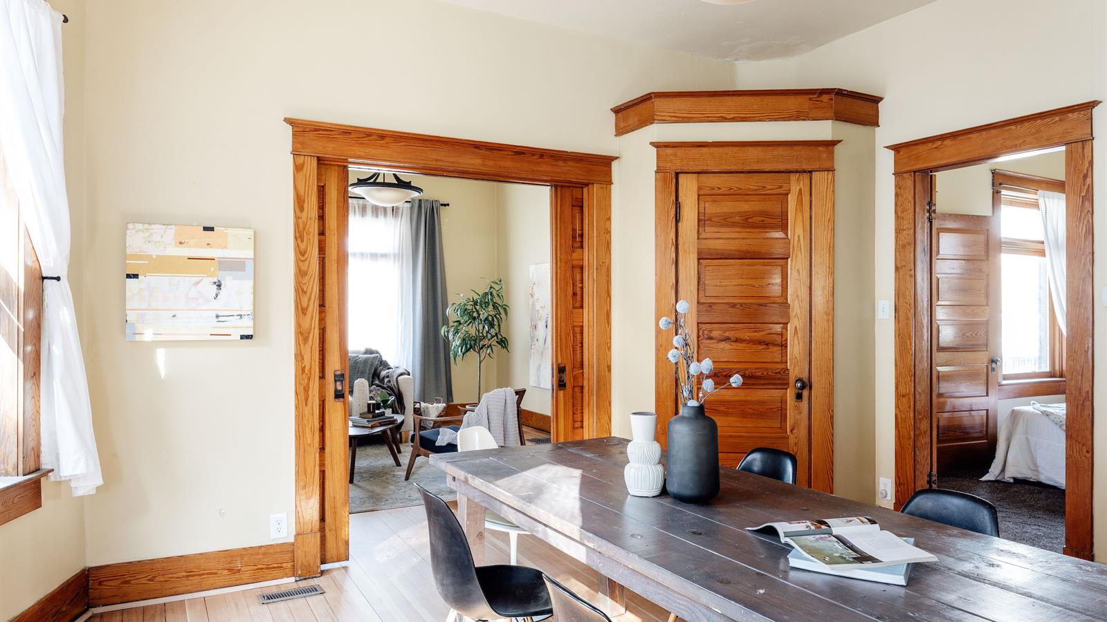 only if you need it that is, as this home already features two bedrooms and two bathrooms, with spacious living and dining areas separated by beautiful wood pocket doors. The updated kitchen fits seamlessly with the overall style of the home, and boasts a large walk-in butler’s pantry with original cabinetry. The updated bathrooms contain modern tile work, with one featuring a clawfoot tub in addition to its stand-up shower.