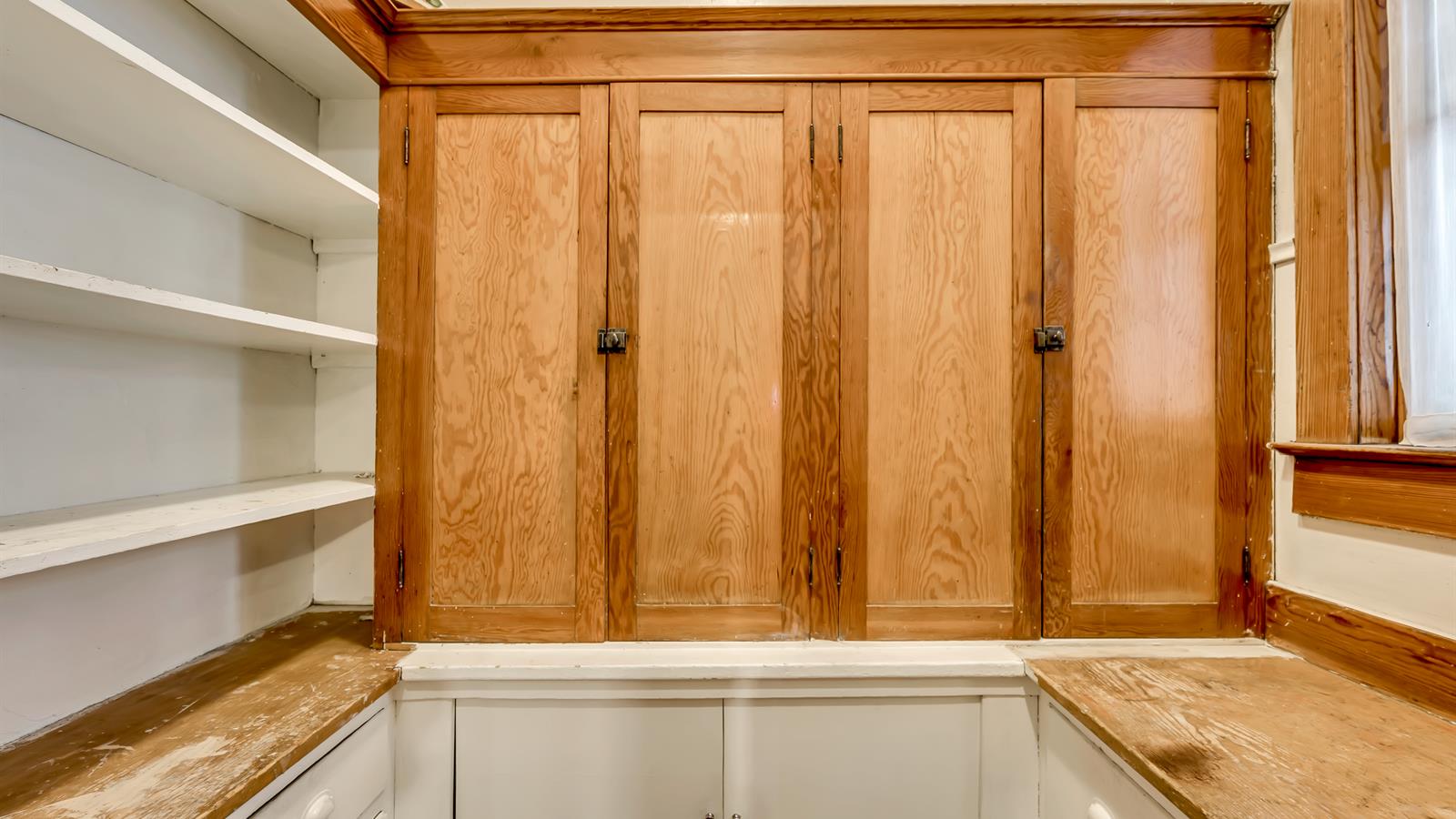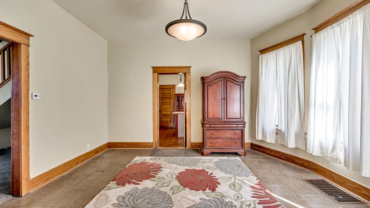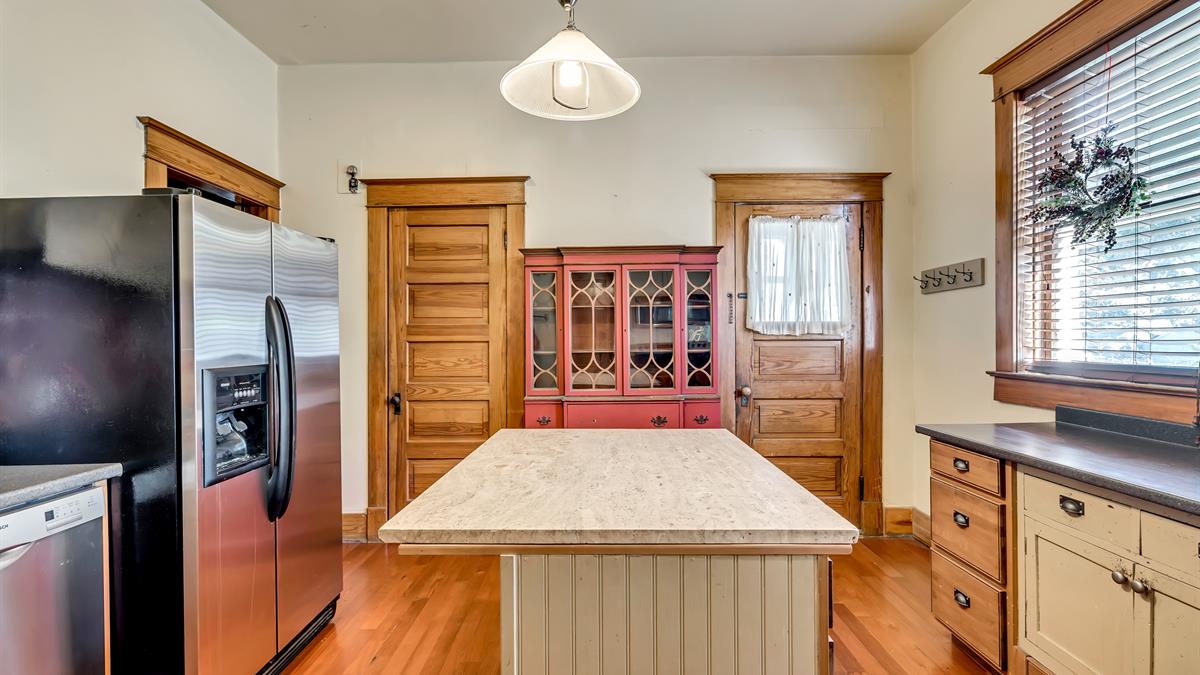 Preserved since 1907, the home’s wood trim and doors remain in pristine condition and lend plenty of warmth to their surroundings. Plus, other details like the wood frame windows are still fully operational.