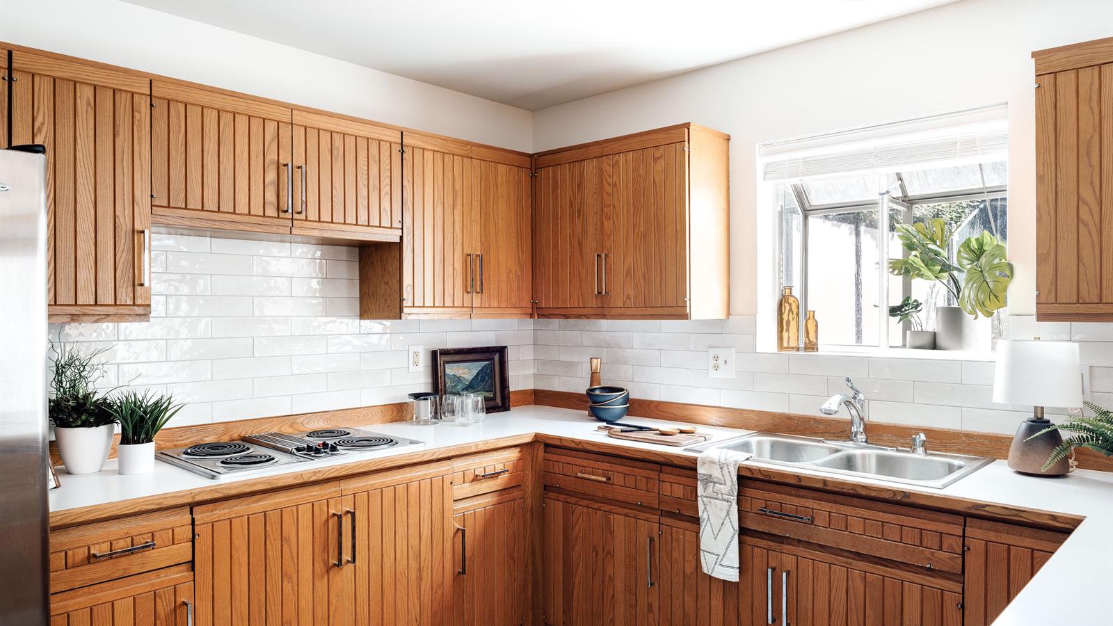 Clean, crisp modern exterior turns this 1970’s build into a smartly dressed (light reflective) dreamboat. Prestige oak flooring, spacious bedrooms, xeriscaped front, unique cabinetry and green, private back deck equate low on maintenance and soaring in style.