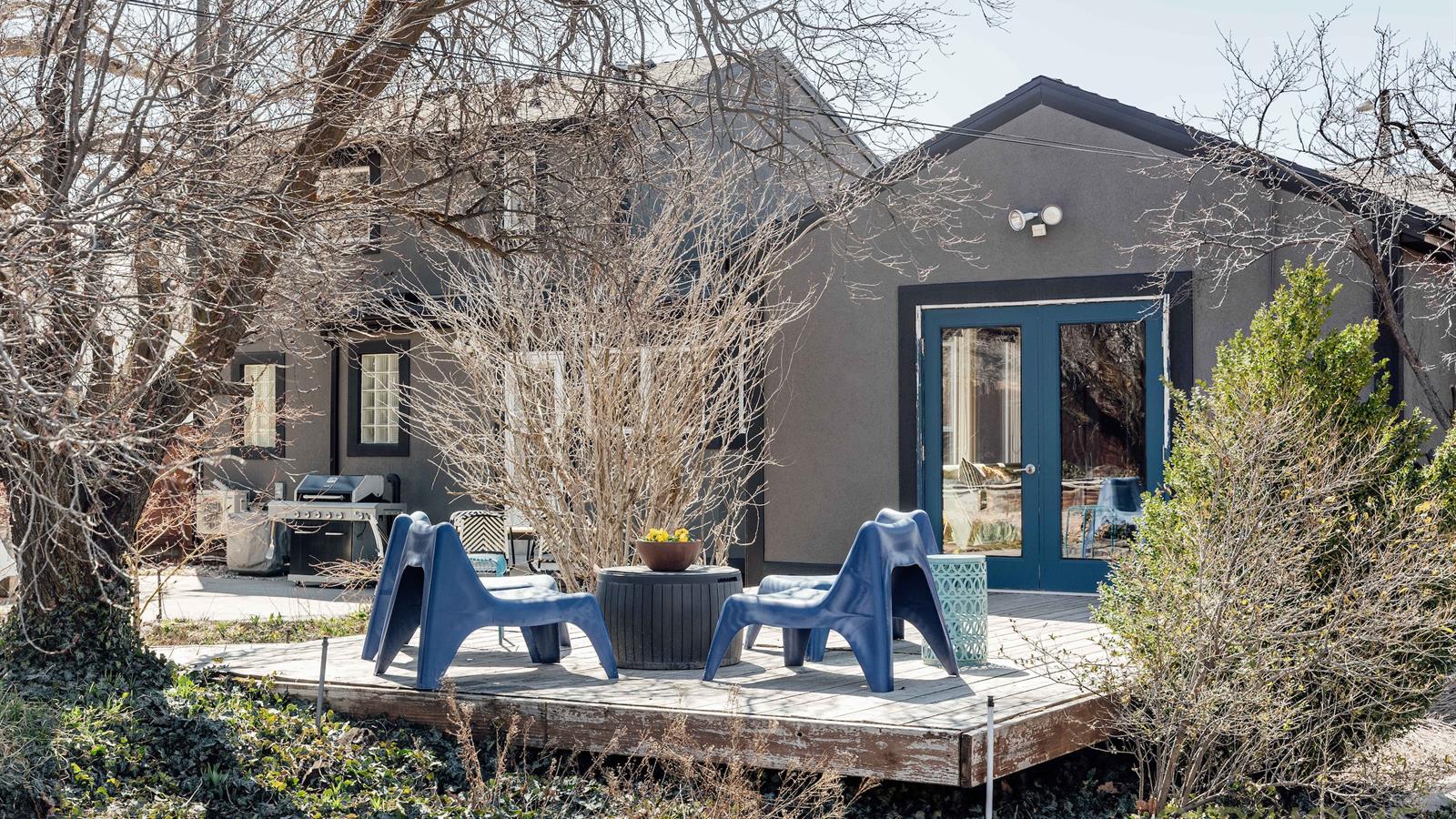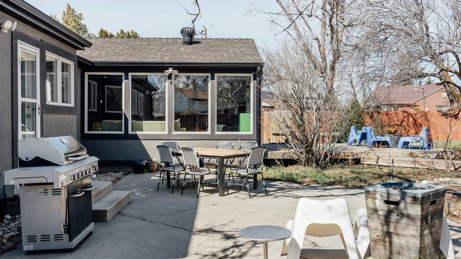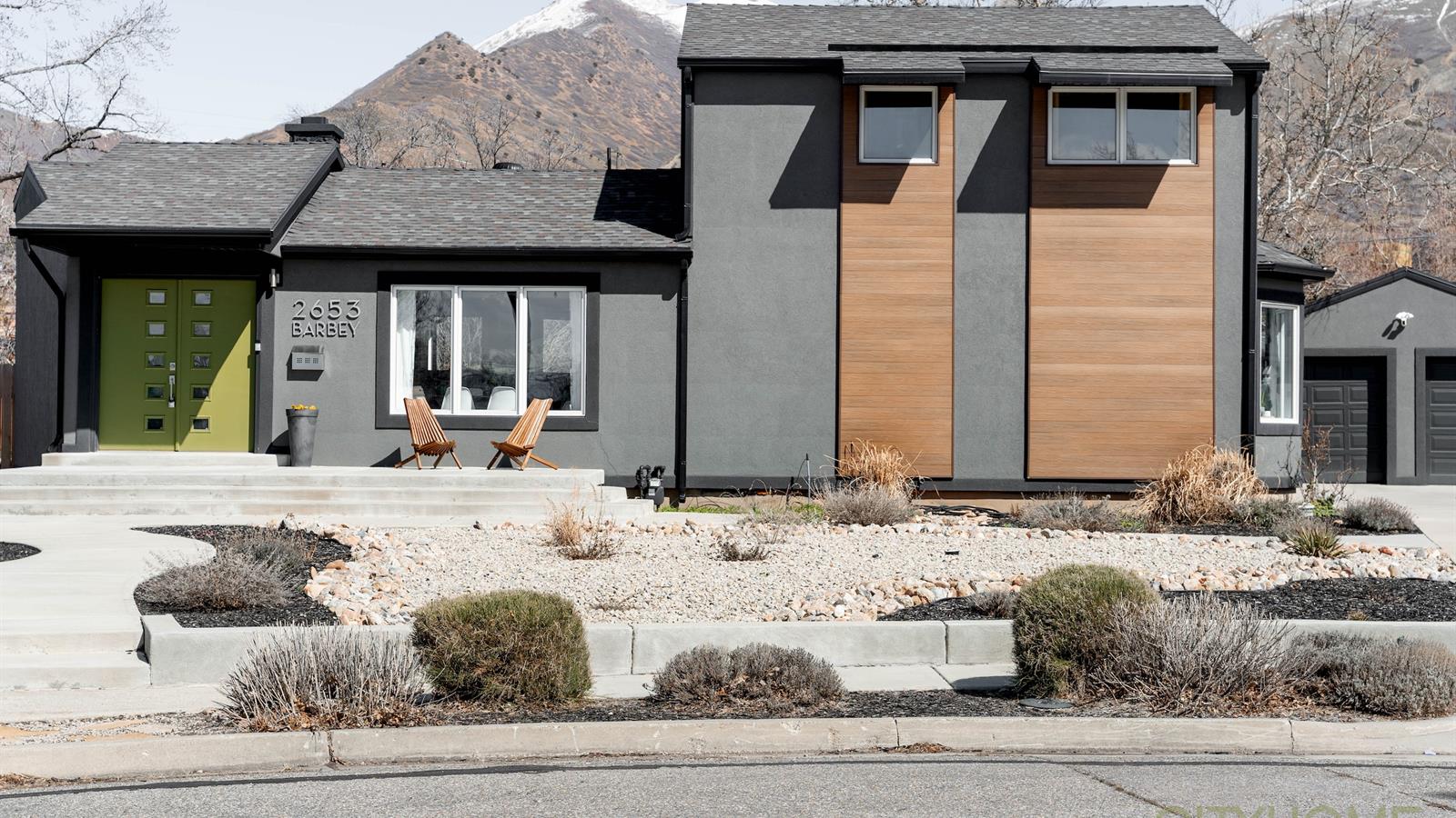 The backyard is a sanctuary teeming with life. From large trees, and generous garden boxes, to windy gravel paths, the space offers an oasis nestled at the base of the Wasatch Front.