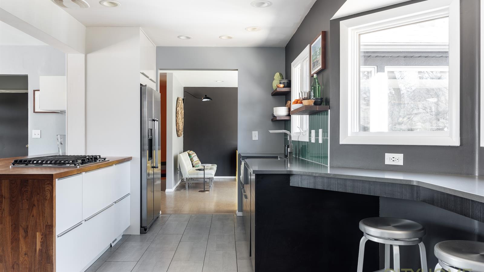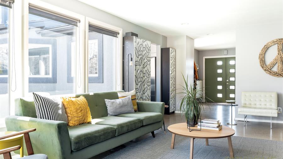 This beautiful abode tucked in Canyon Rim is brimming with life. It will lure you in with its colorful mid-century style and thoughtful updates inside and out. Its well-thought-out landscaping leads you from Barbey Dr. to its welcoming front door.