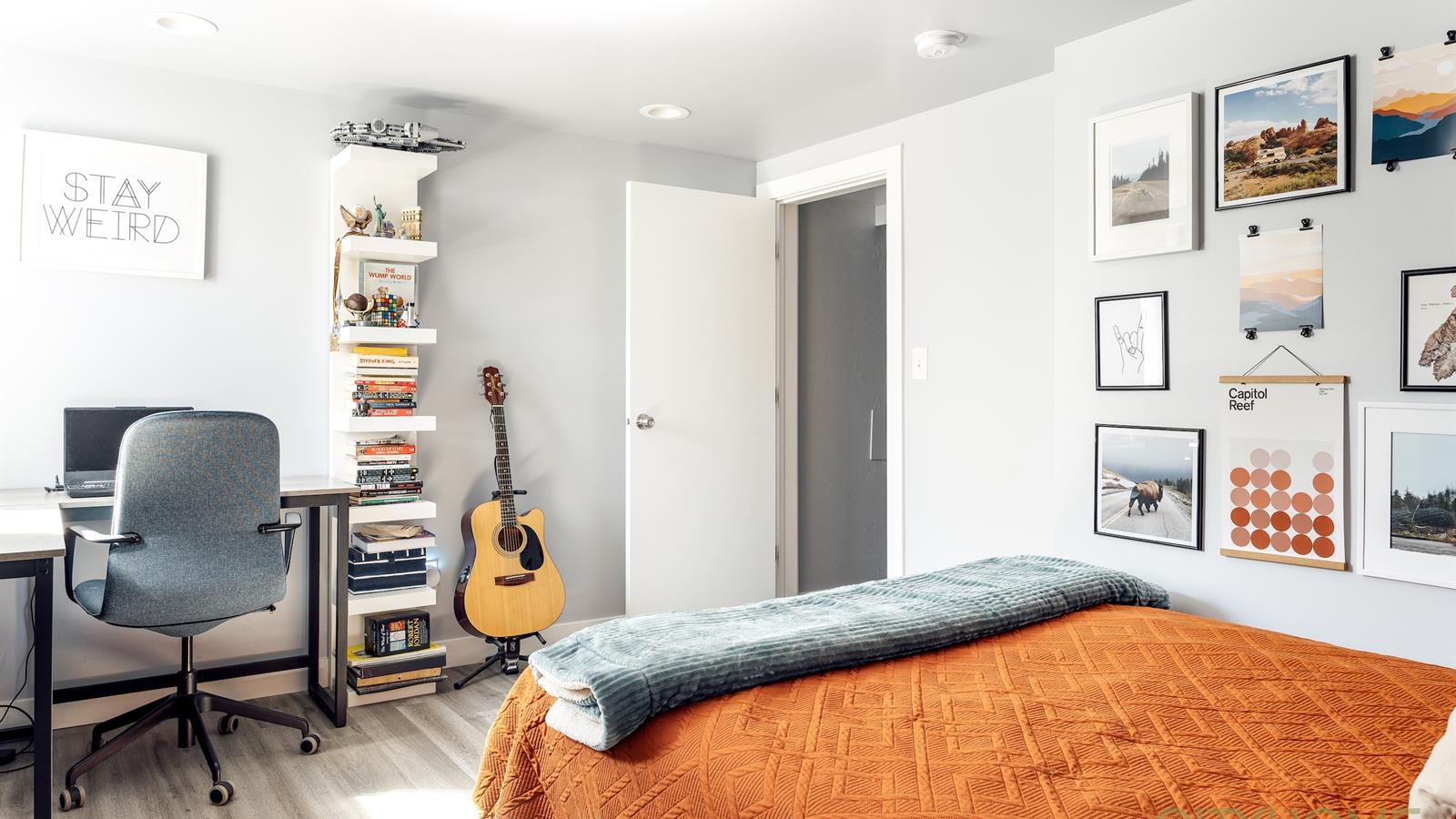 Off the family room, the addition of another bedroom and spacious bathroom completes the inside of the home.