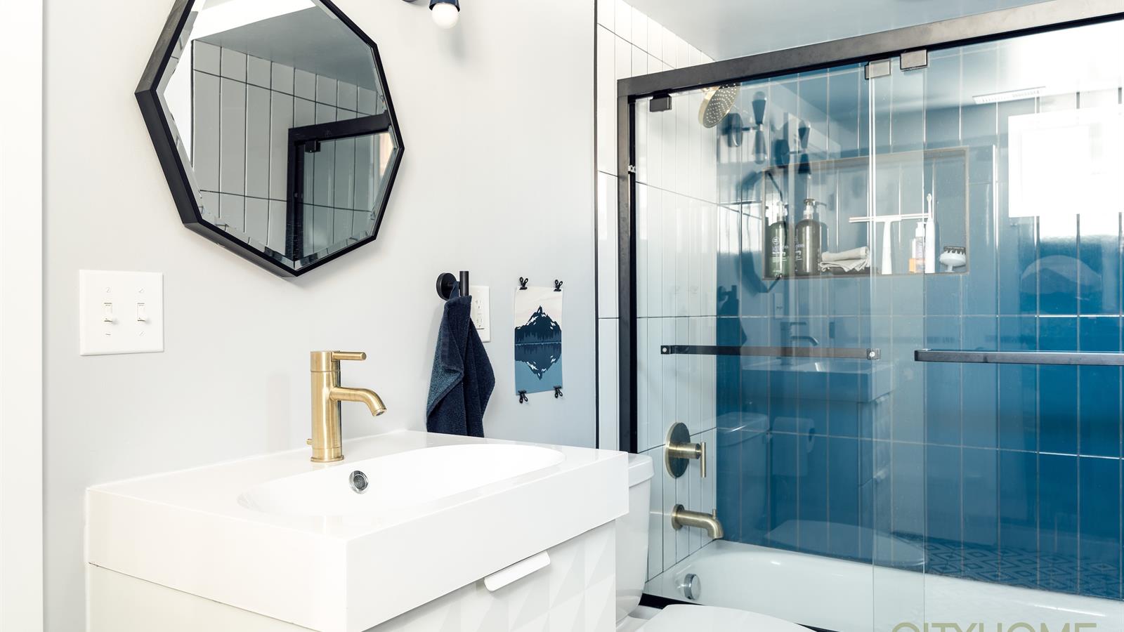 Thanks to the thoughtful remodel the second floor flows with ease. The two bedrooms have been reshaped to provide ample space. The bathroom has been expanded to fit the home’s needs.