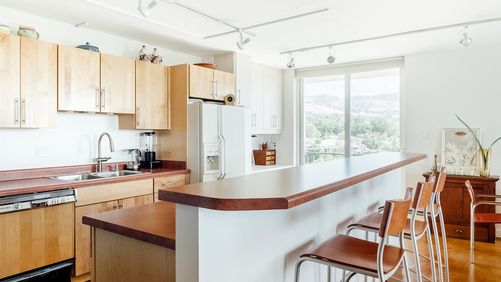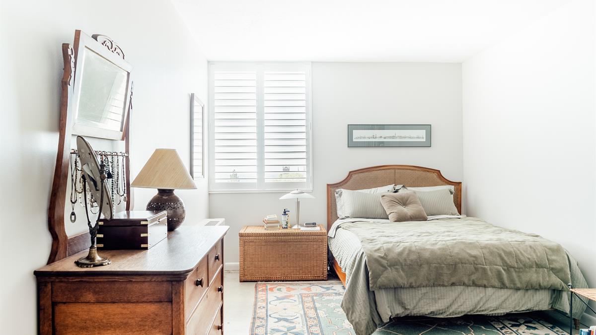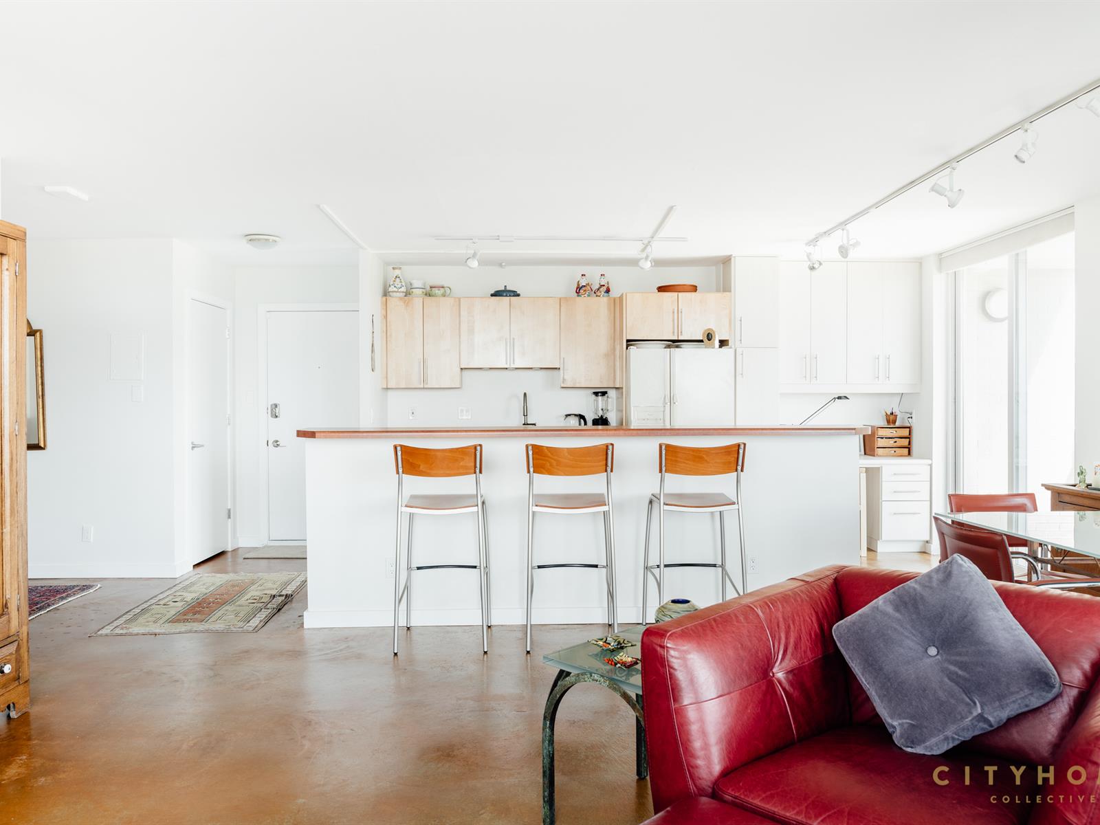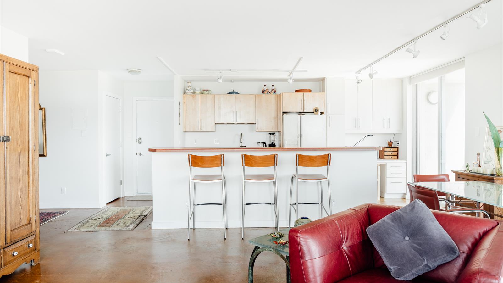 The unit itself sports polished concrete floors, all new windows and sliding doors, updated bathrooms, and a fresh, modern paint job throughout.