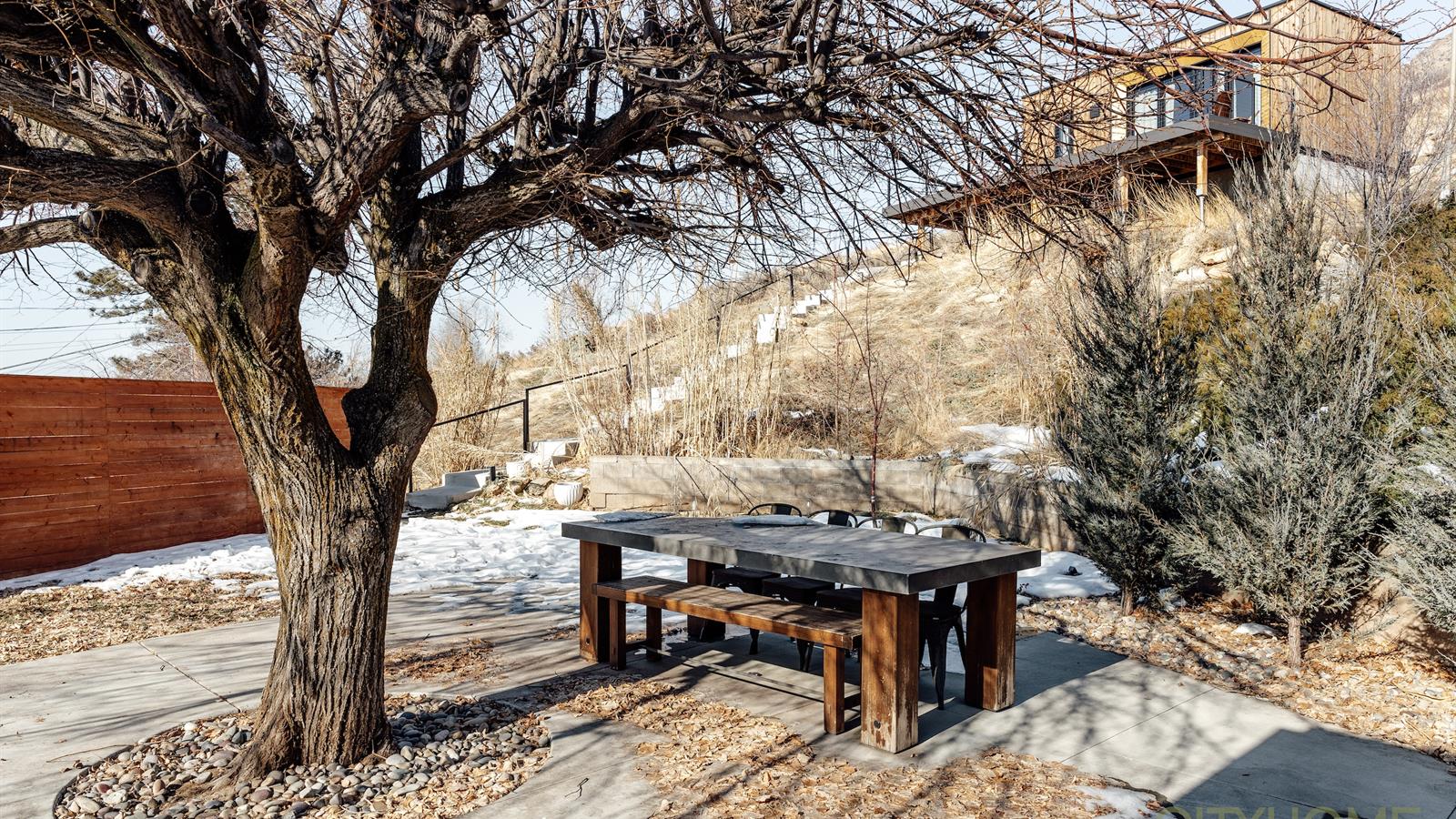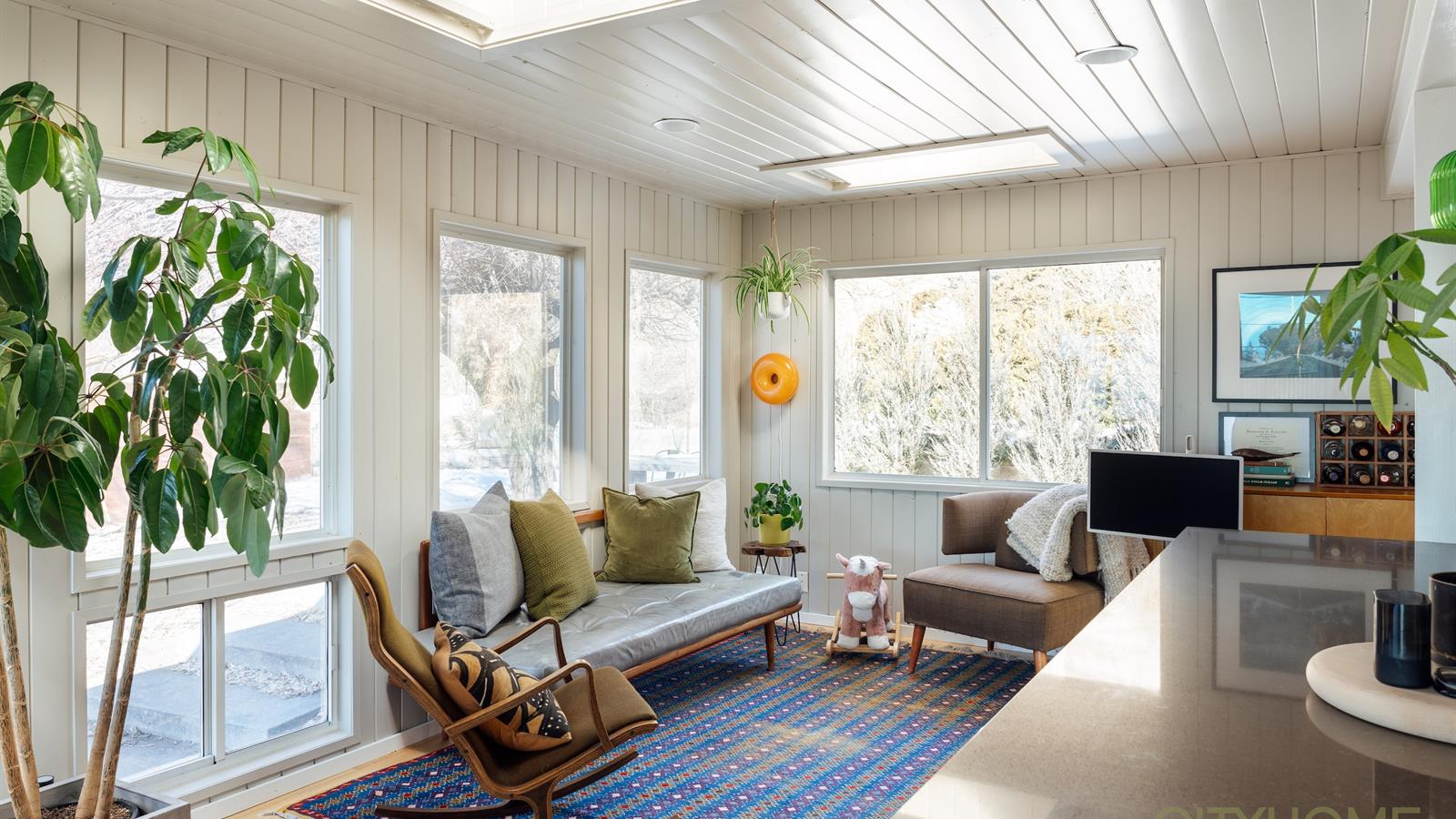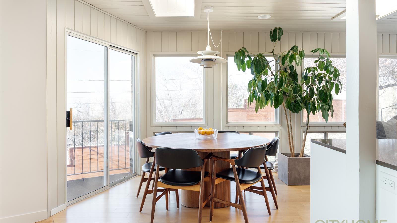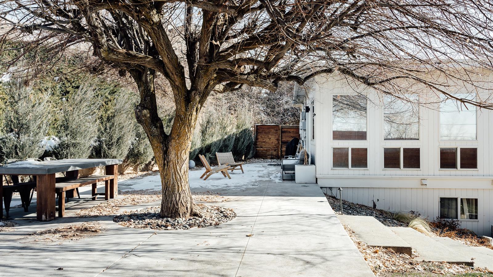 The home sits on nearly half an acre. It's oriented to maximize its south westerly exposure. Afternoons are bathed in golden light while outside a grand lindon tree throws open her arms, offering shade.
