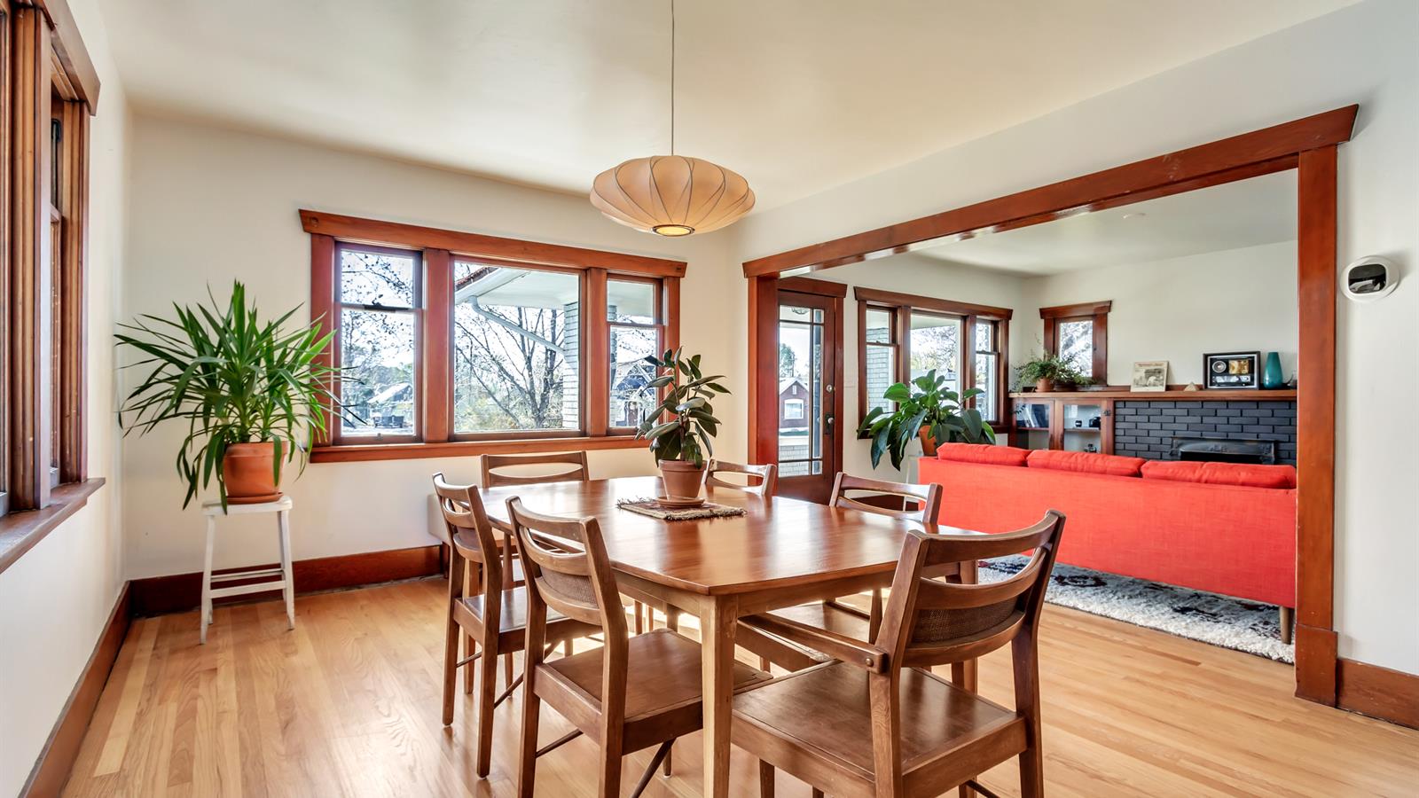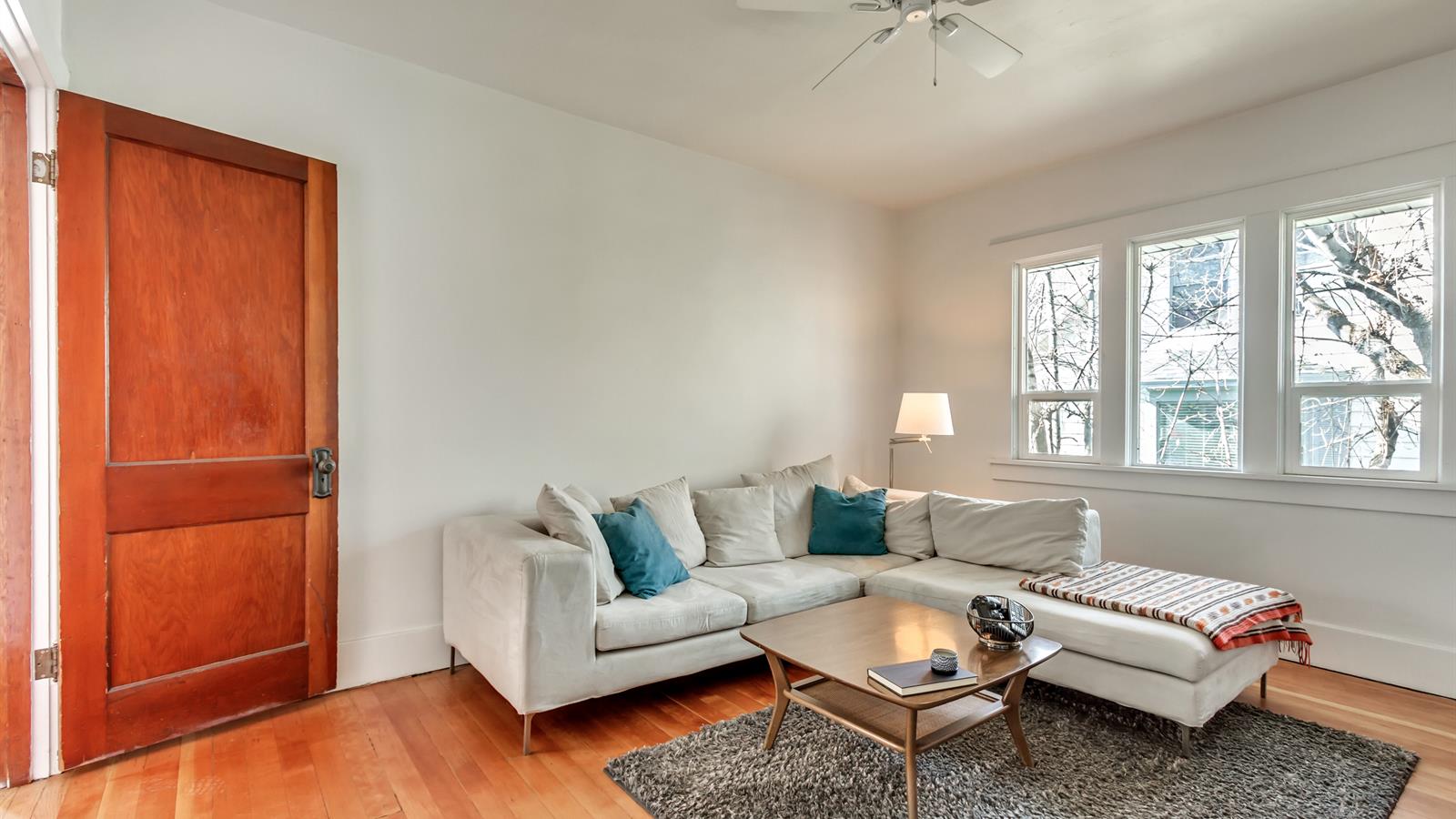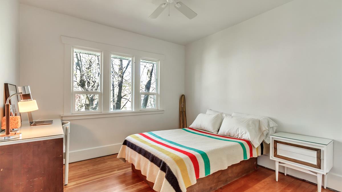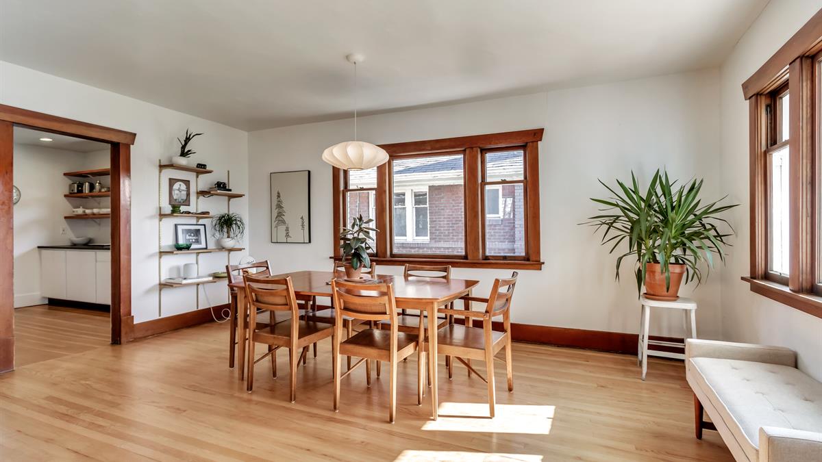 The woodwork inside this spacious 3-bedroom home has been wonderfully preserved and adds a welcome degree of depth throughout the space.