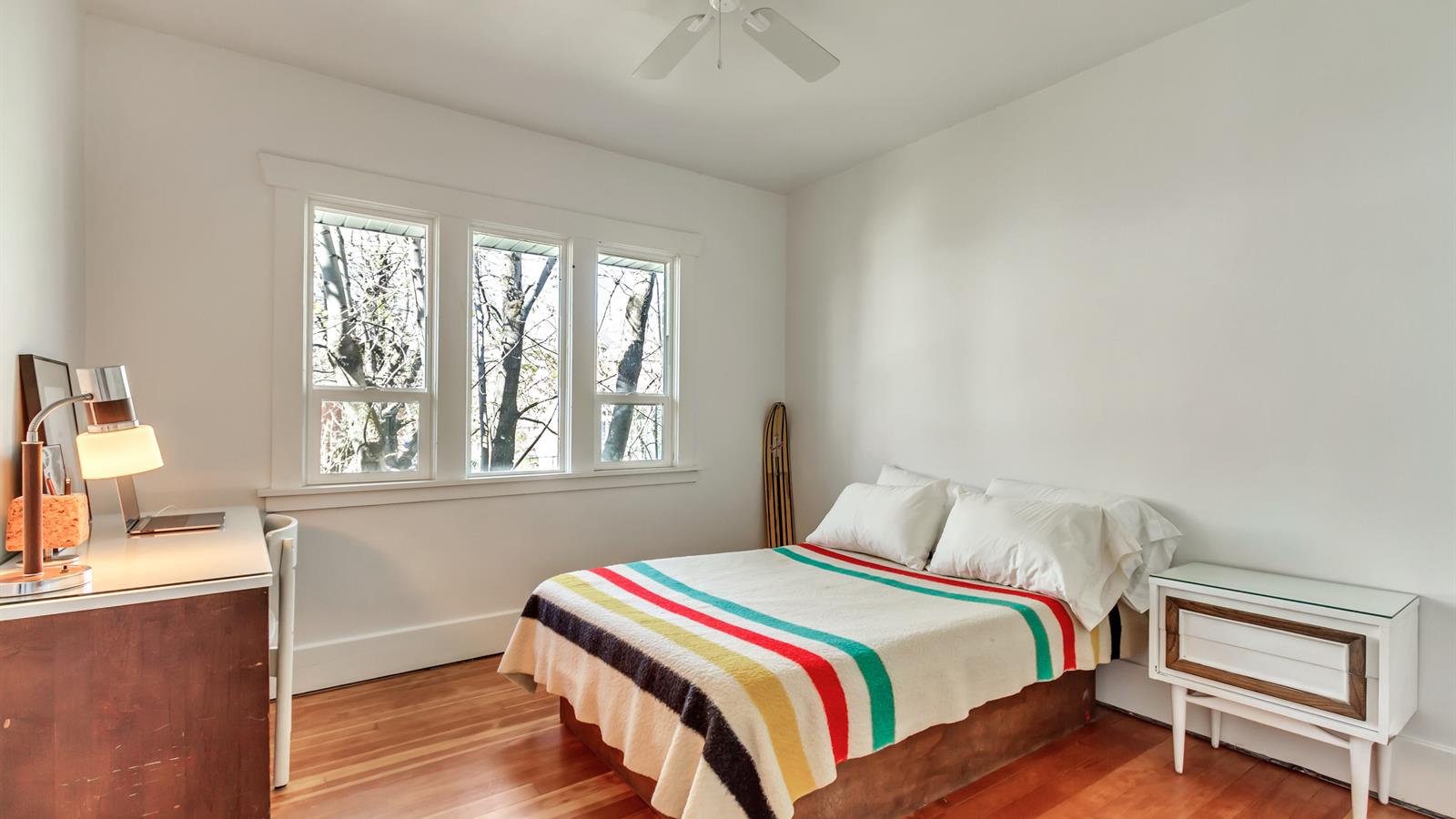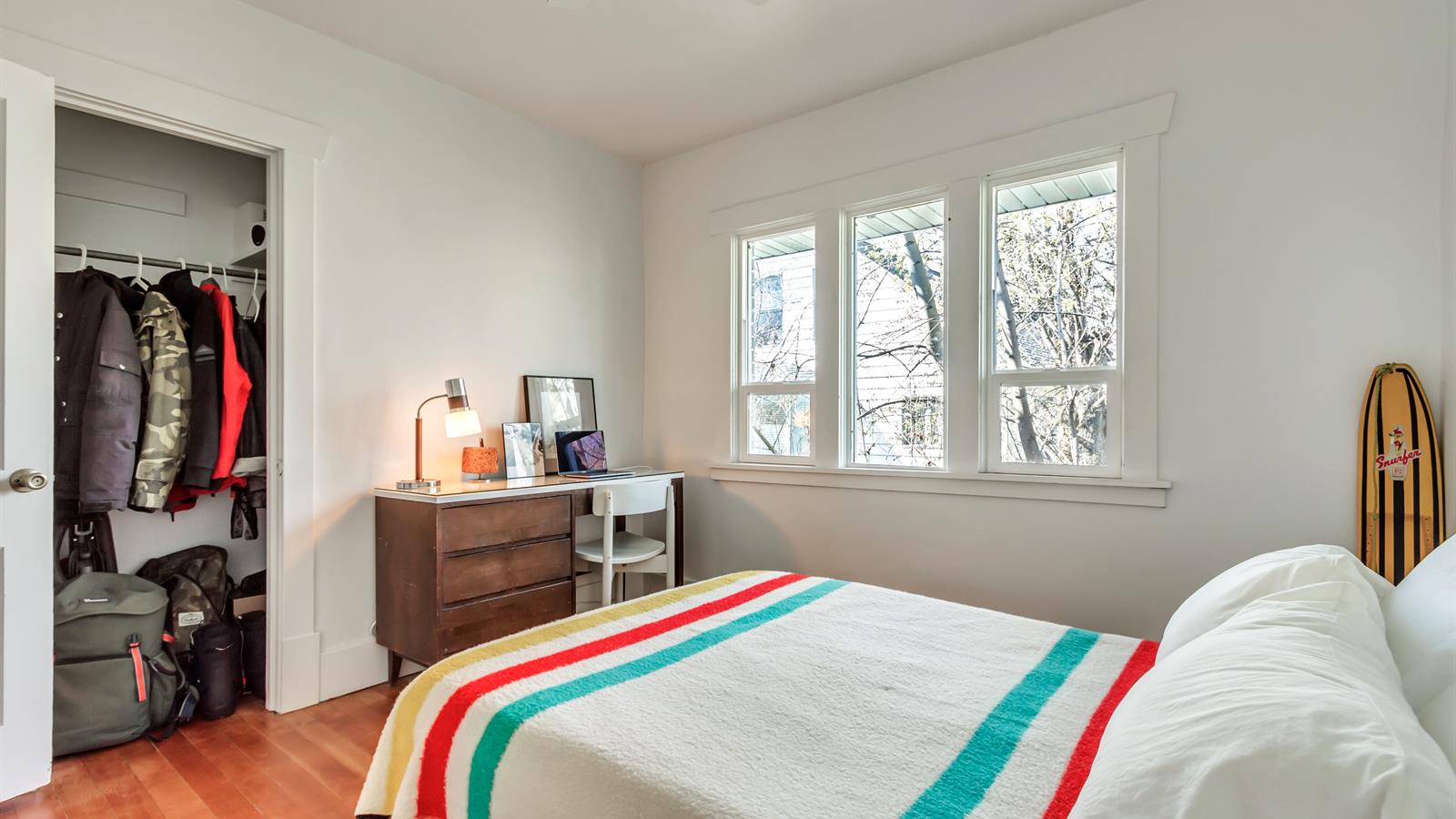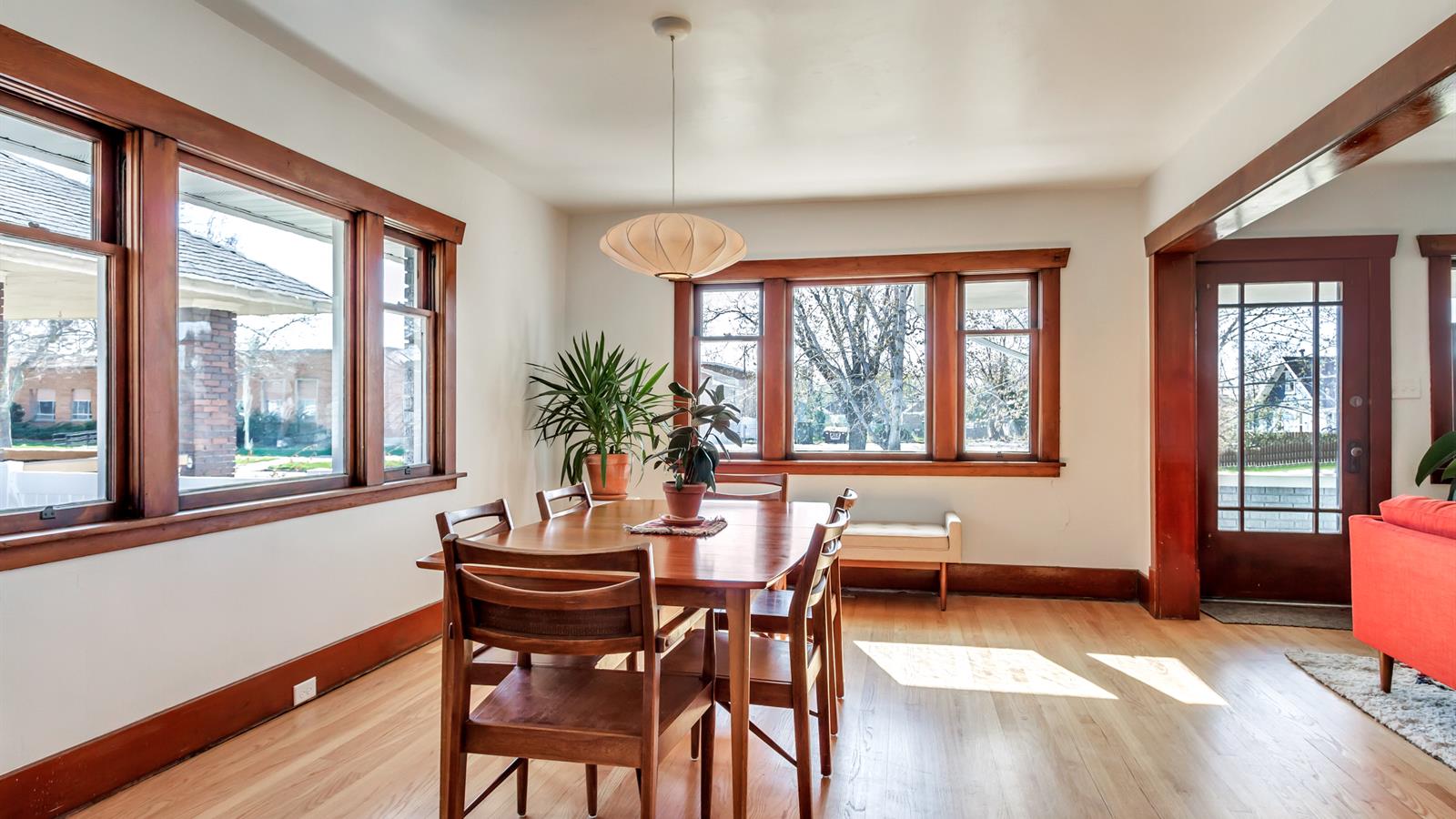 The woodwork inside this spacious 3-bedroom home has been wonderfully preserved and adds a welcome degree of depth throughout the space.