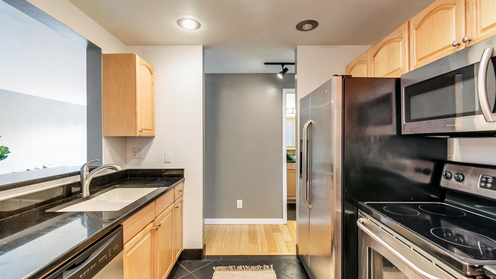 The interior is immaculate, and the kitchen’s been updated, to boot. The hardwood floors are a nice touch, say we, and you certainly can’t go wrong with a private balcony (perfect for post-work, outdoor hangs).