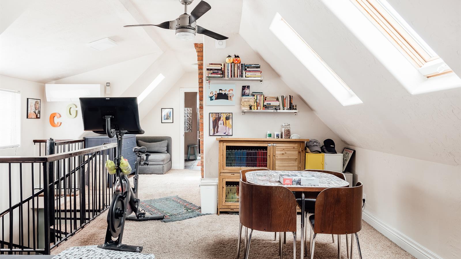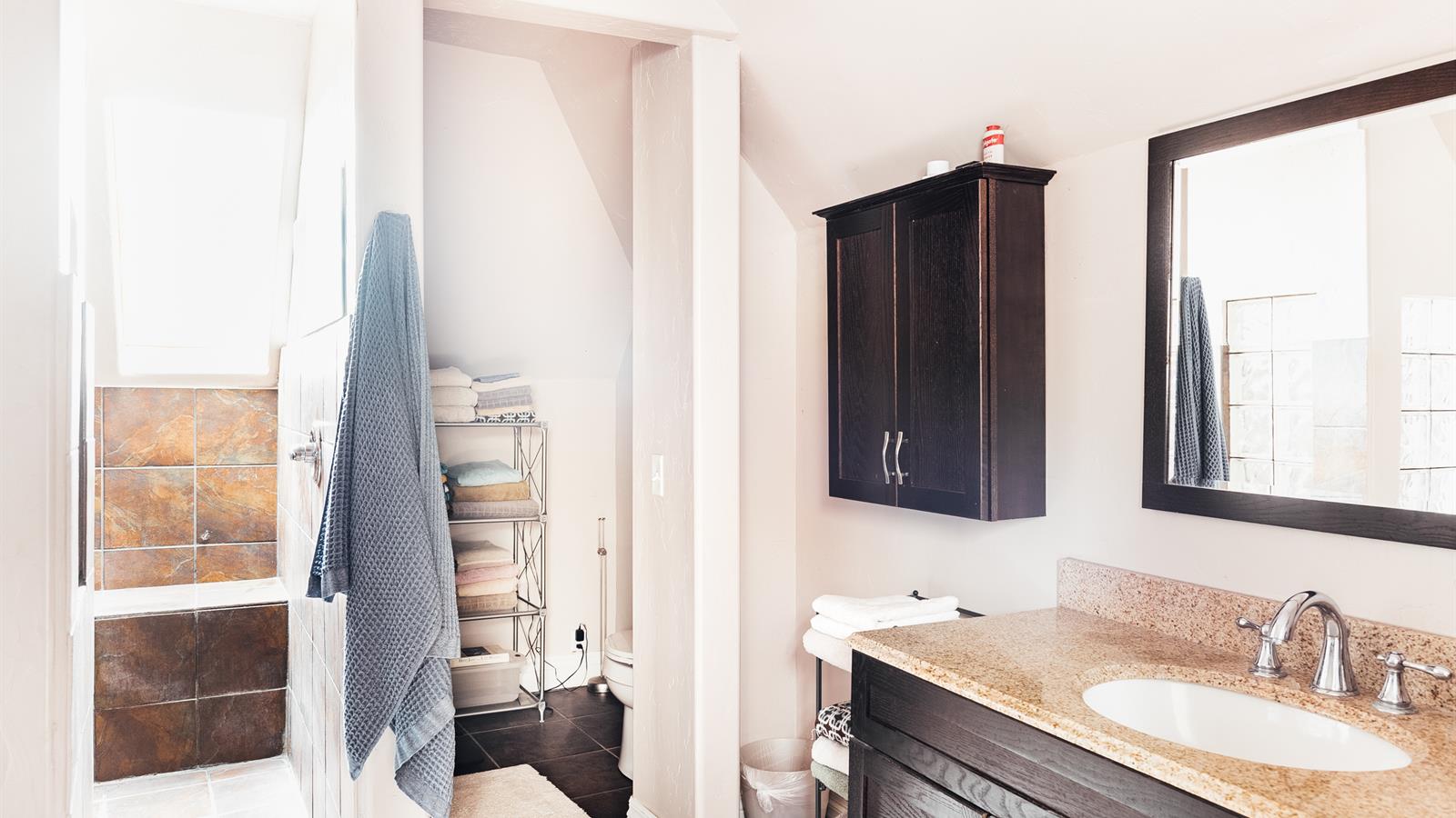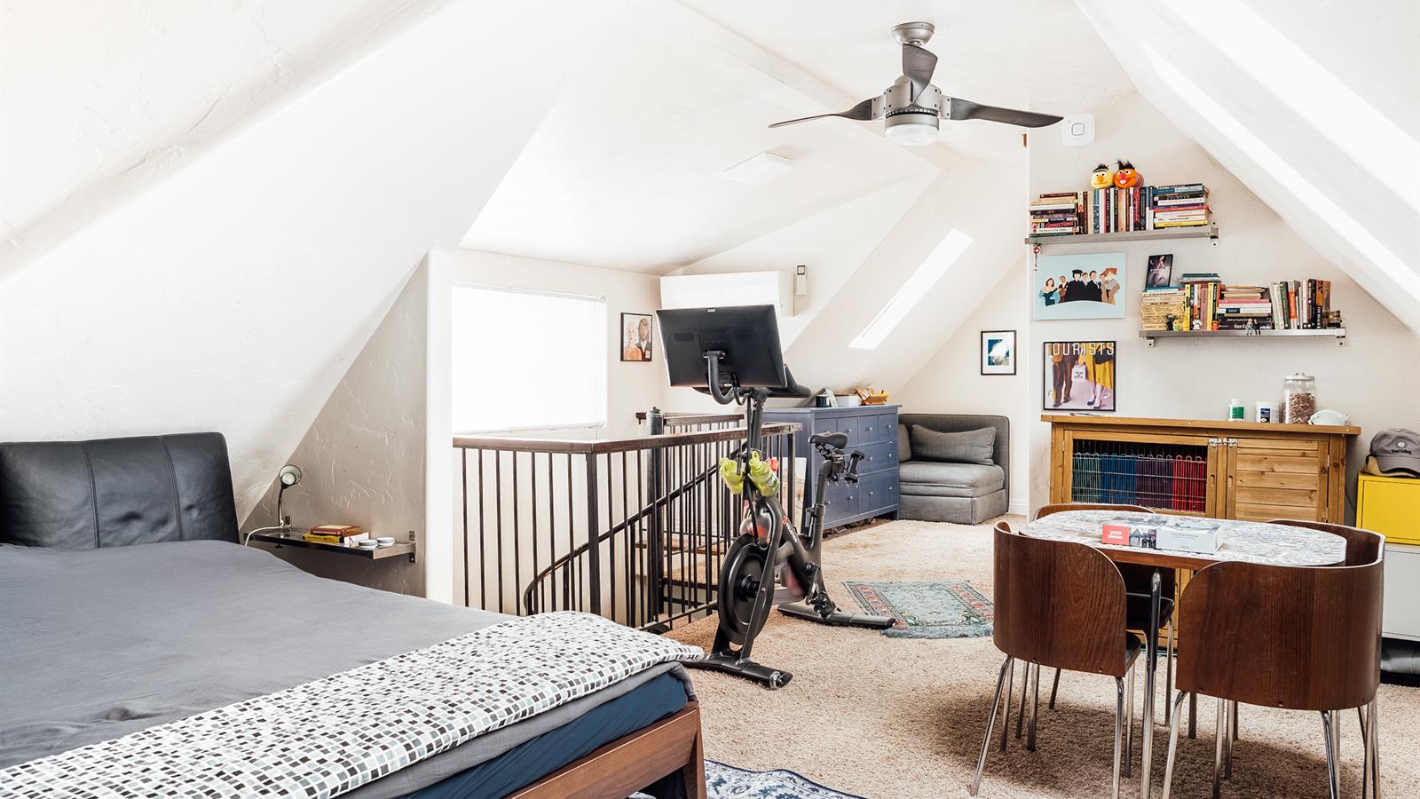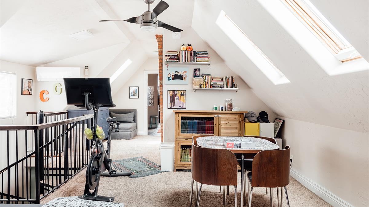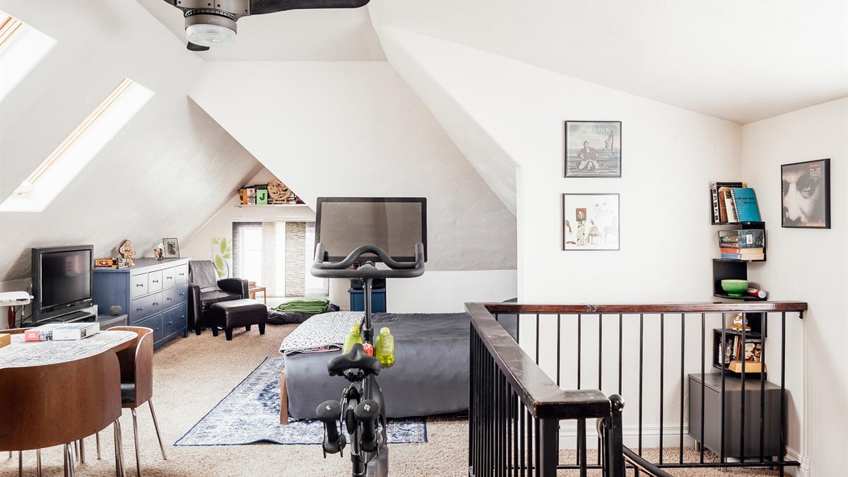 Upstairs, you’ll find a bright and airy loft space that serves as a main suite (but a few less noticable features, such as new furnace/AC and a recently replaced sewer line are also yours to take advantage of).