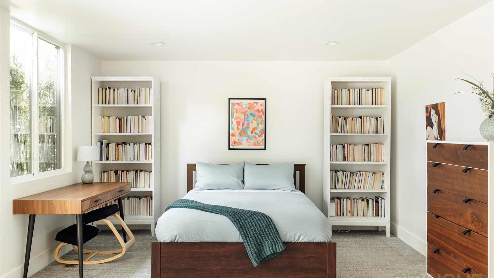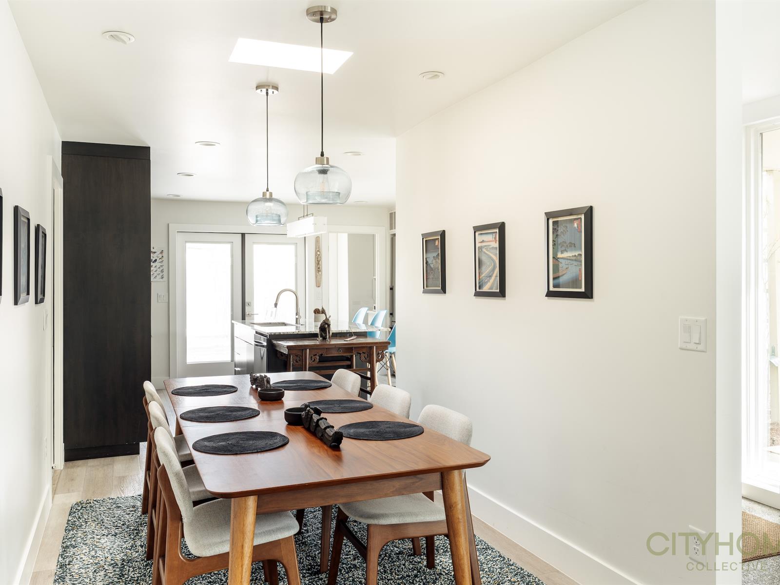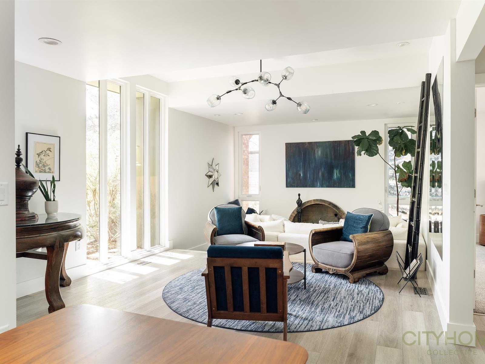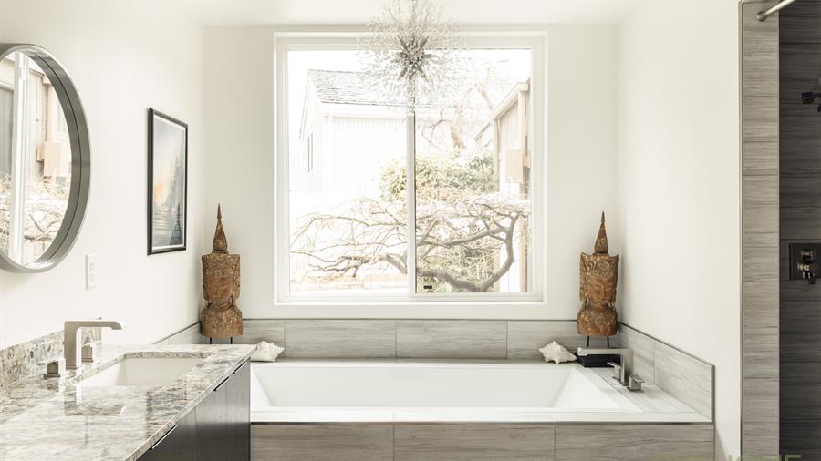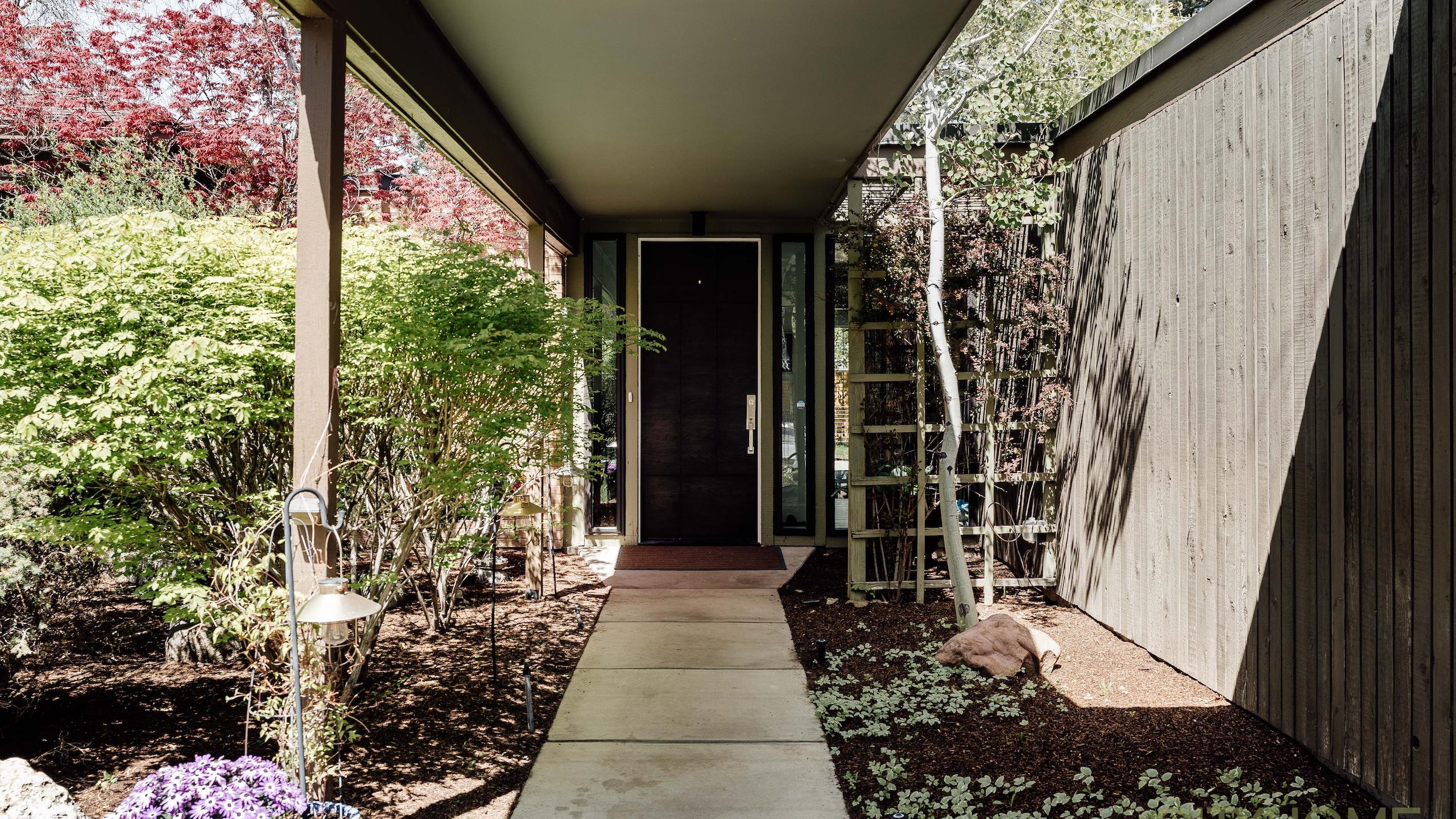 With just over 2,200 square feet of mindfully-laid out living space, the home exemplifies all the elements of a Ron Molen home: oriented to maximize privacy and natural light; constructed with integrity; designed for everyday living. The interior of the home recently underwent a complete renovation, and its transformation is stunning. The primary bedroom now comes with an en suite bath with a large tub.