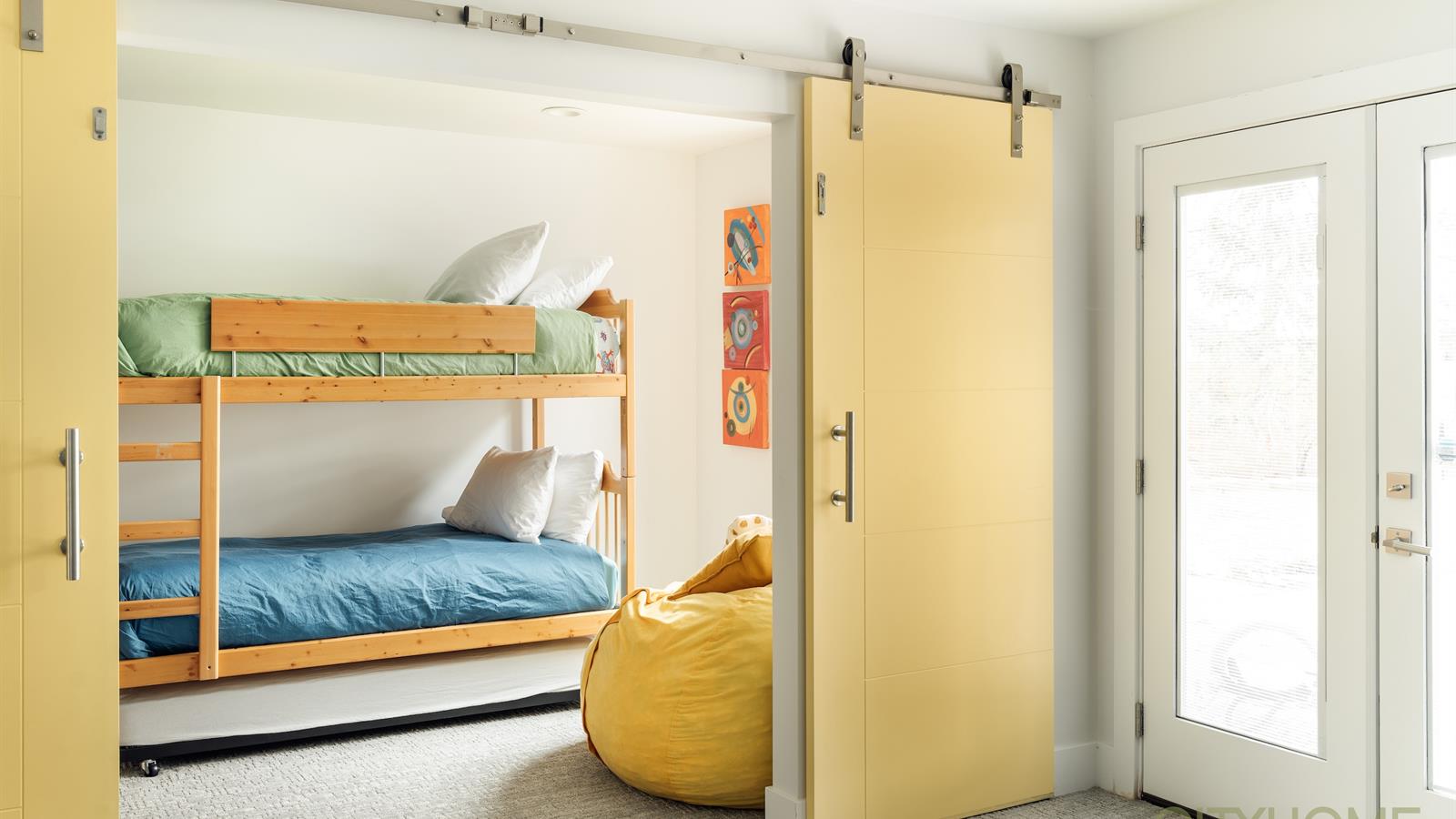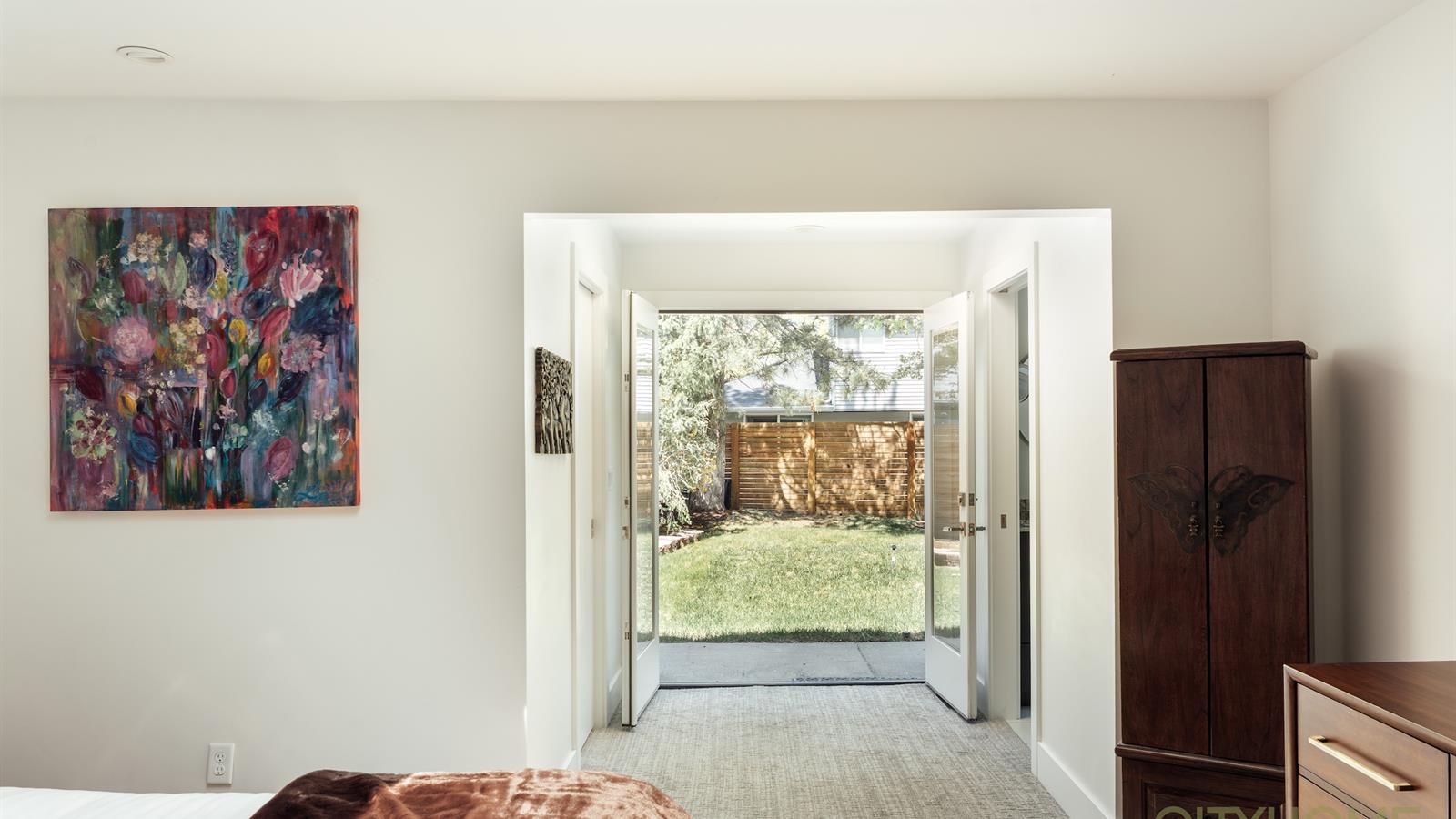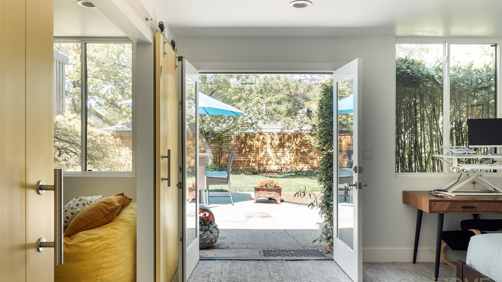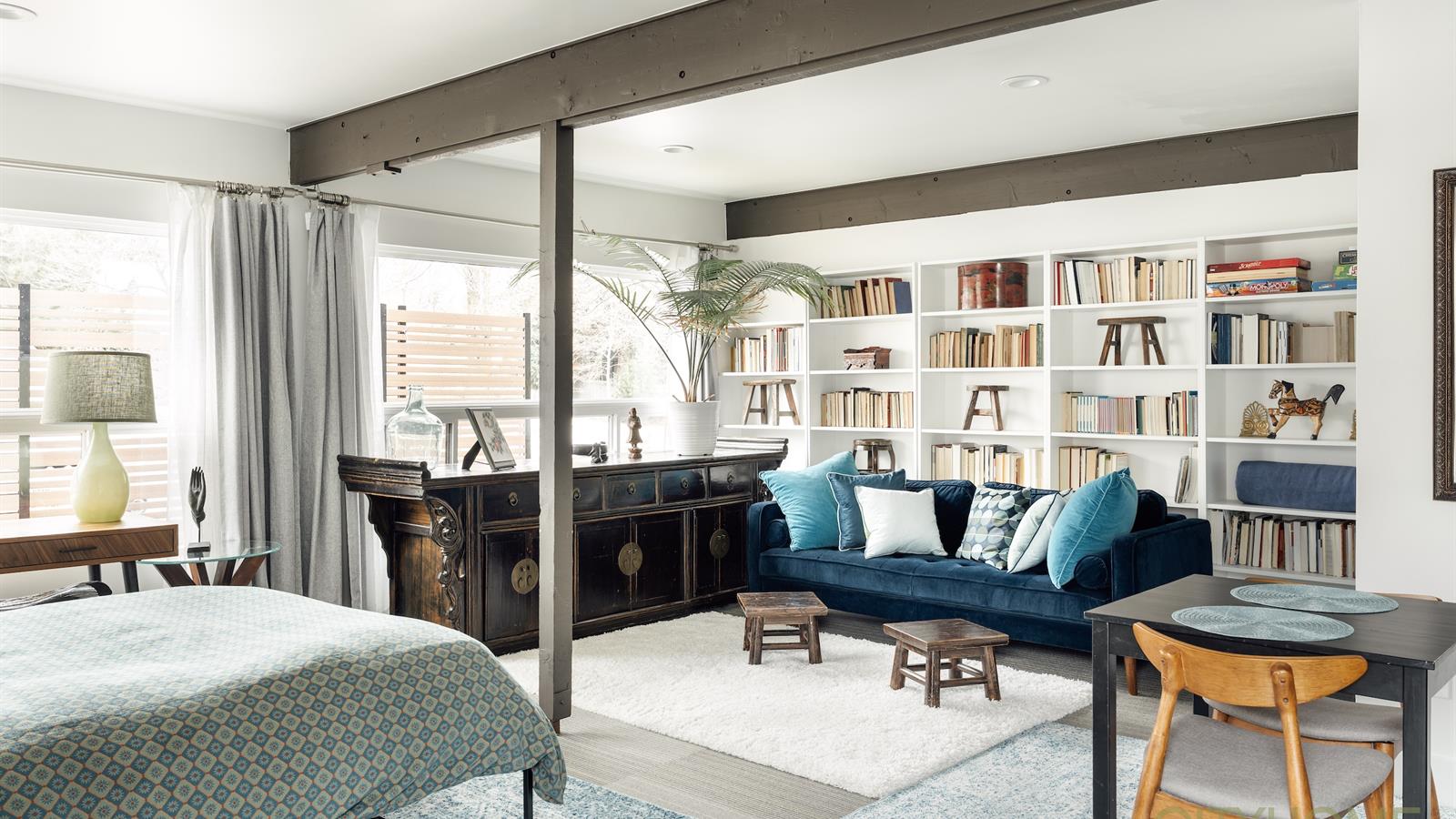 A wonderful surprise: the garage has been converted into a charming apartment, complete with its own Murphy bed, kitchenette, bathroom and a pair of french doors leading out to a private patio. It’s the perfect addition for guests or home office or even an art studio.