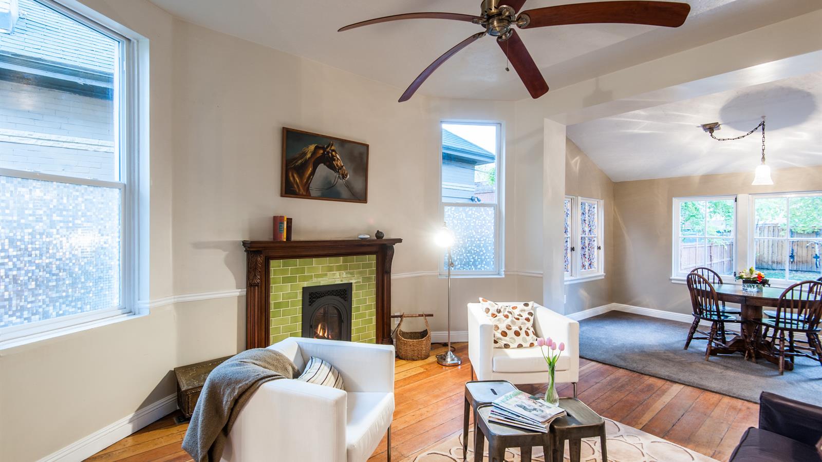 Incredible downtown location. Property has two seperate residences (one parcel)! Front and back house with loft have separate yards, parking and storage units. Back house has 952 sq.ft. with loft - 2nd bedroom & could be used as an office. Front house is 1602 sq.ft. with 3 bedrooms and 1.5 baths.