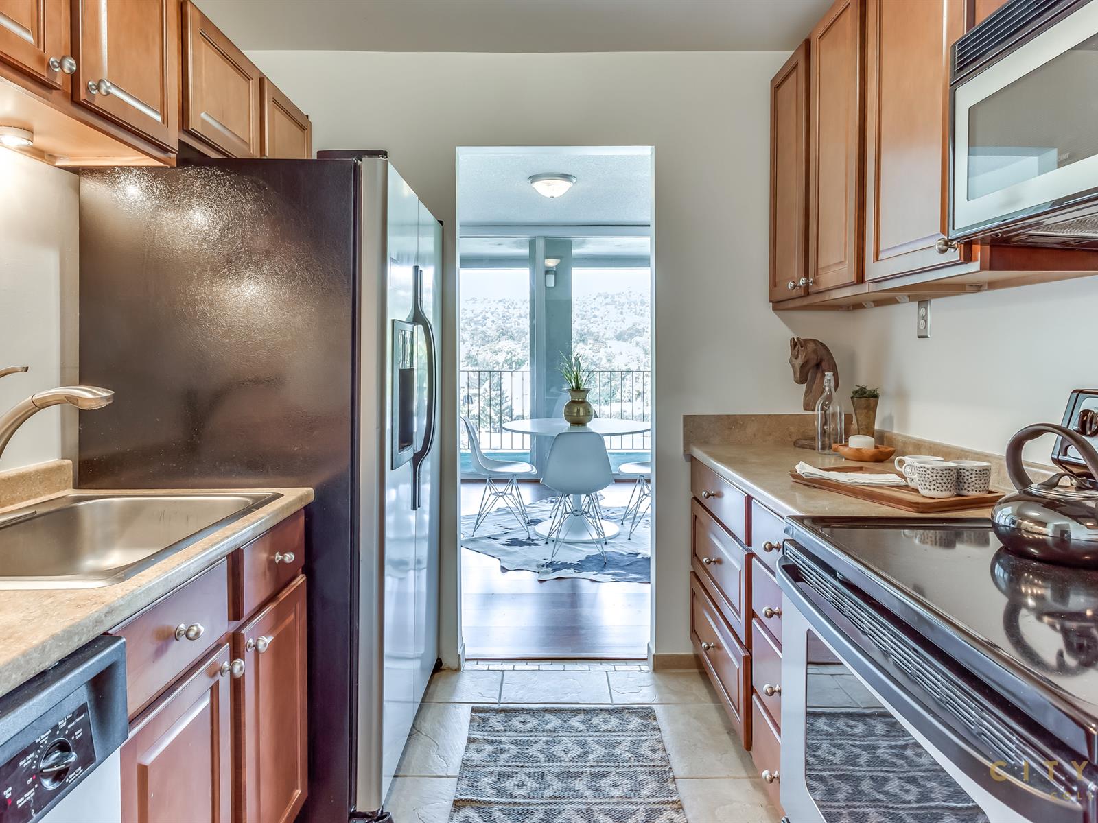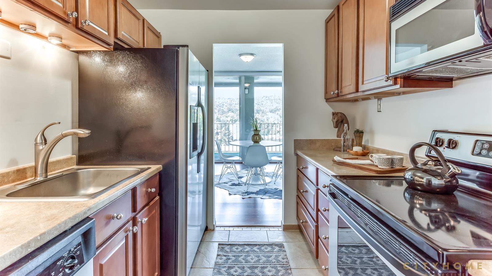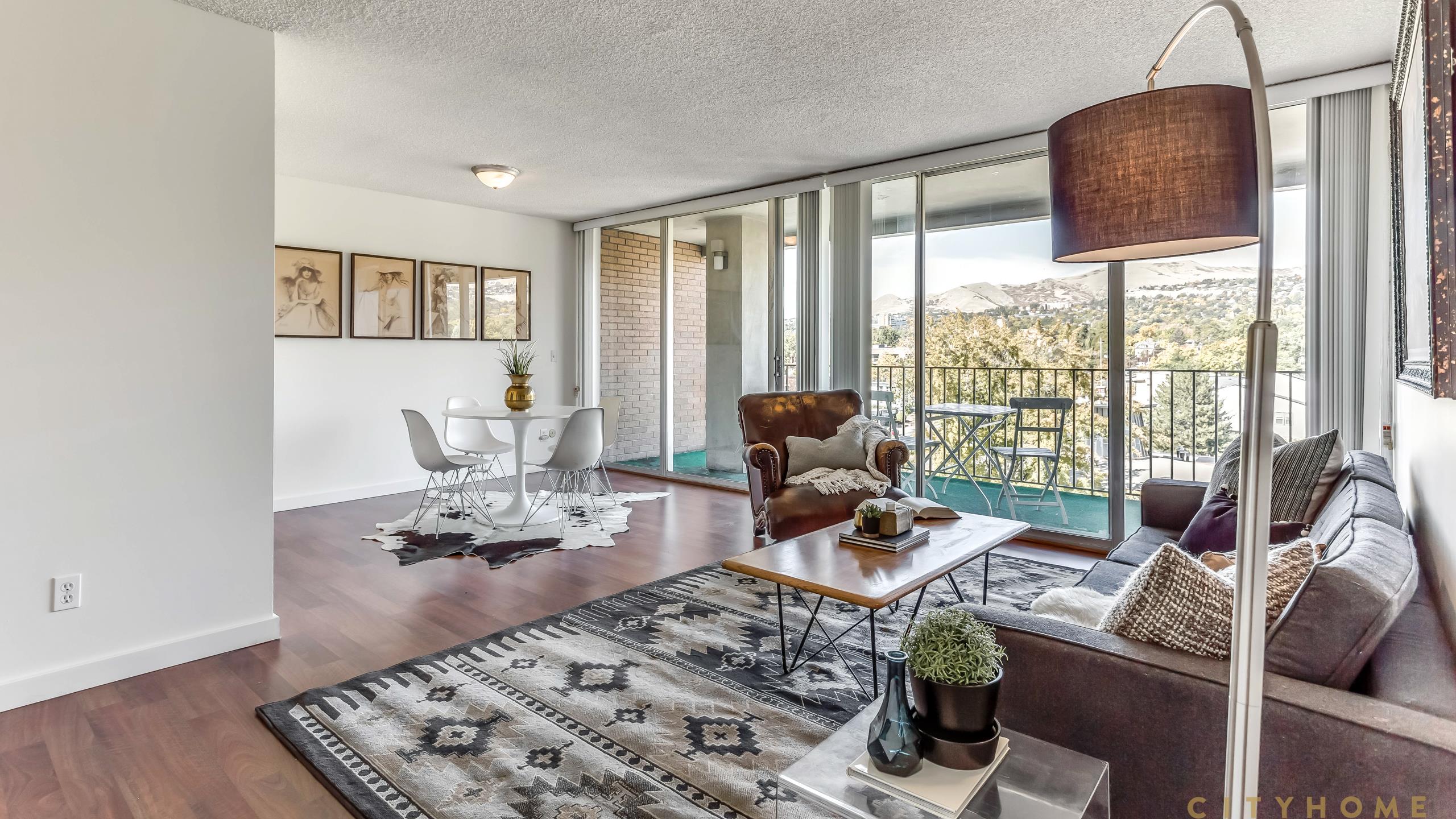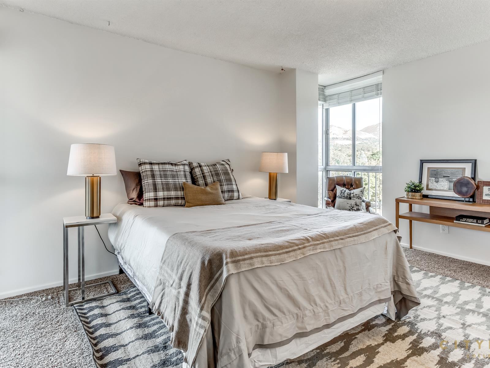 With a couple goodly-sized bedrooms and 1.5 baths, you’ll have room enough to yourself...even with overnight guests. Plus, this particular unit—located on the 7th floor—sports floor-to-ceilings windows which showcase north-easterly mountain and city views that’ll surely knock any and all socks off (and that patio is prime for taking it all in).