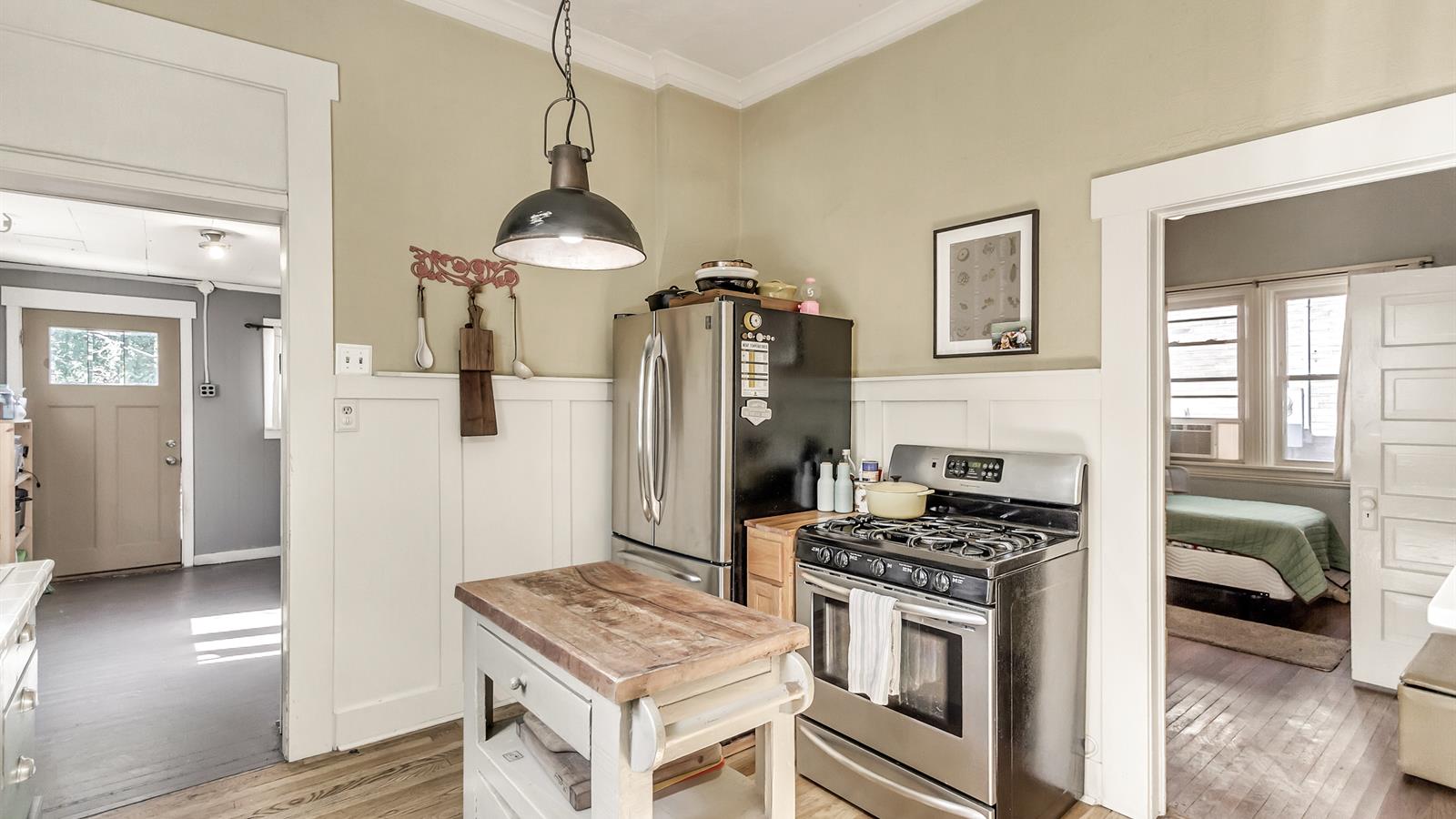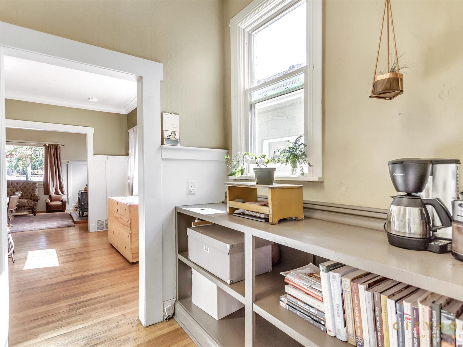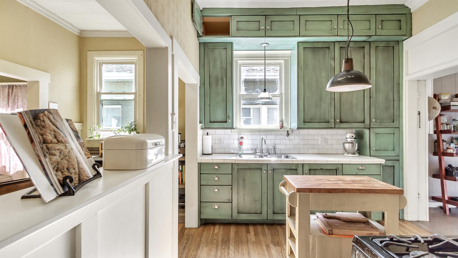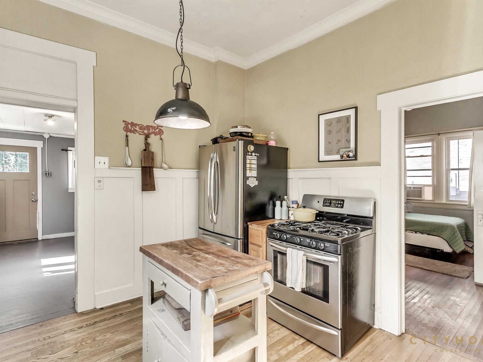 Originally built by early Dutch immigrants, this space sports a cozy front porch, wood flooring, high ceilings, a wood burning stove, tons of storage, and a fenced backyard (complete with plenty-a garden bed).