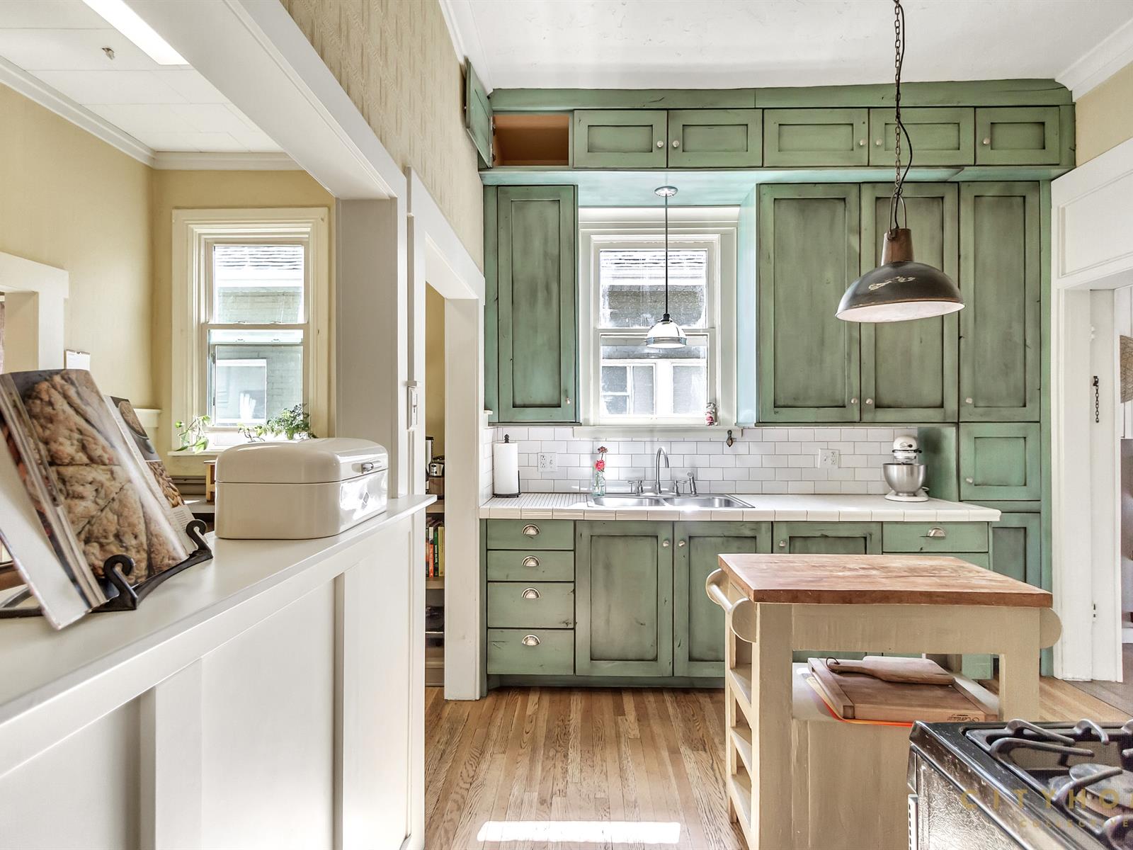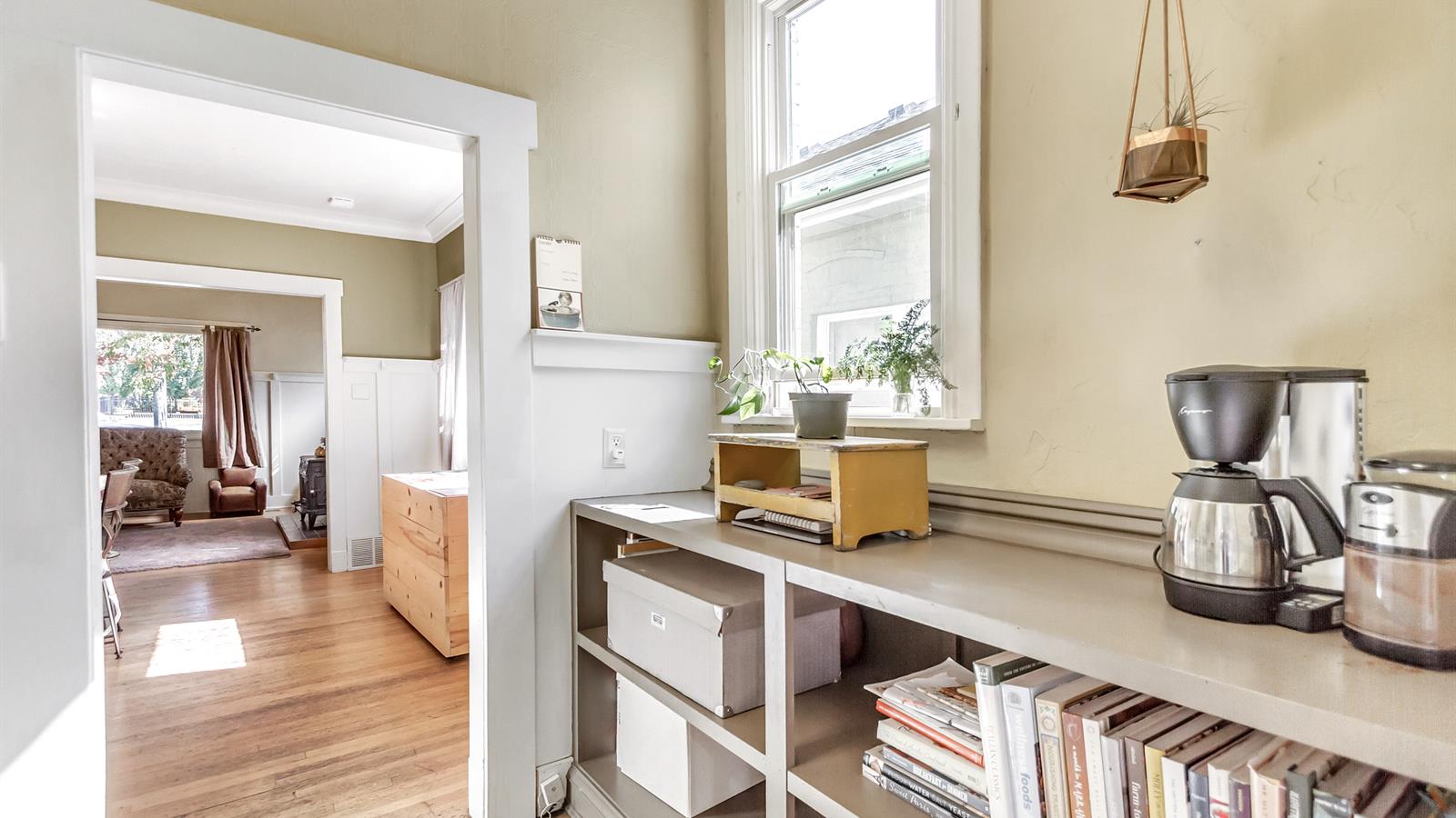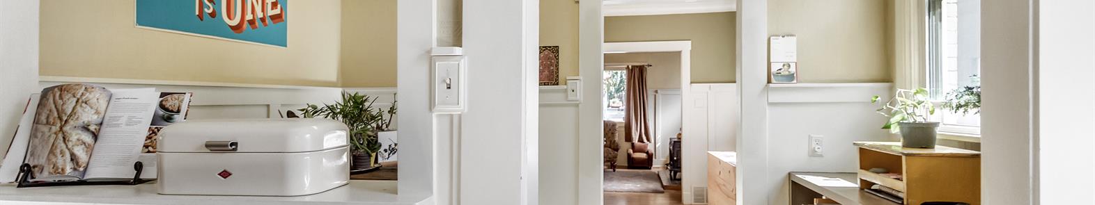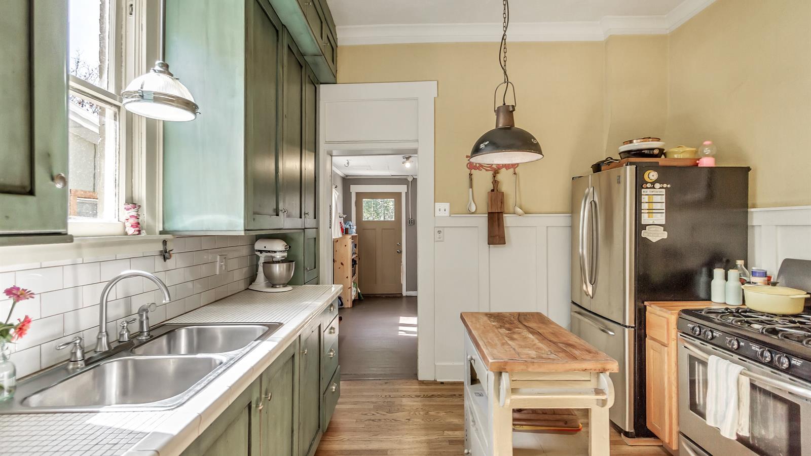Originally built by early Dutch immigrants, this space sports a cozy front porch, wood flooring, high ceilings, a wood burning stove, tons of storage, and a fenced backyard (complete with plenty-a garden bed).