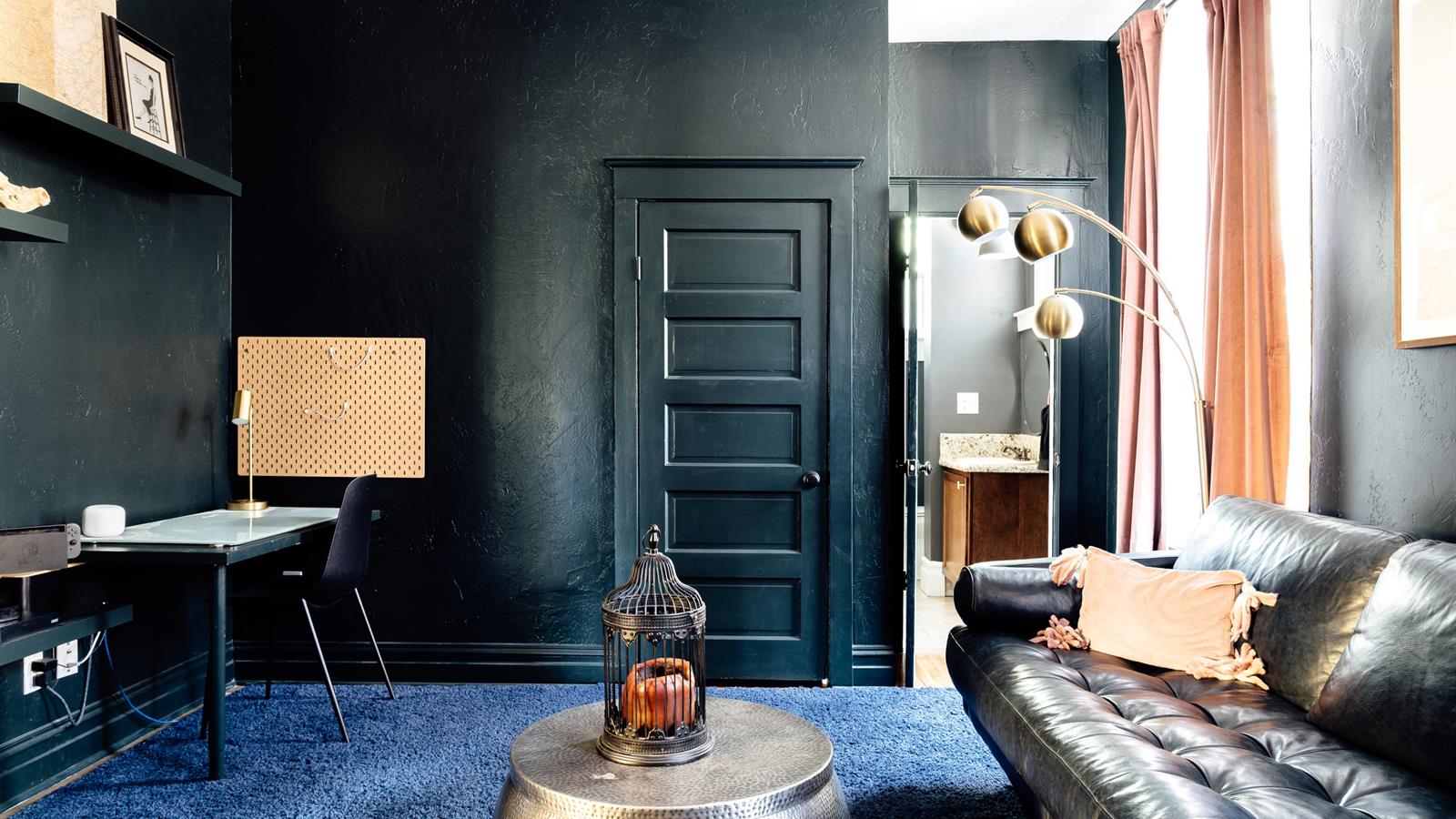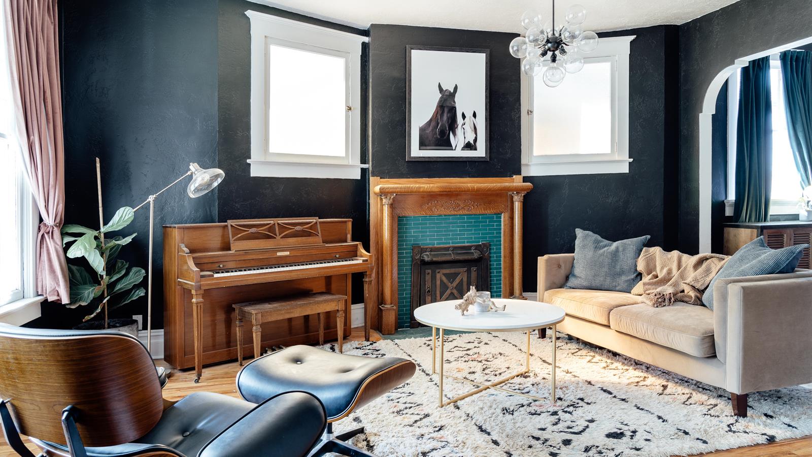 We are particularly keen on that stately fireplace. with its turned columns and glazed turquoise tiles (a swoon-worthy spot to post up on chilly nights).