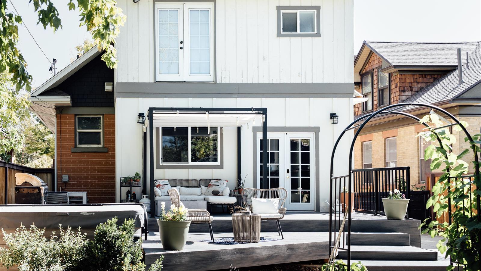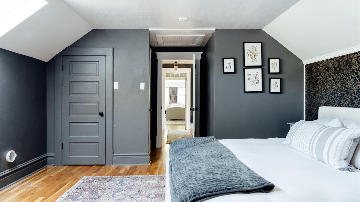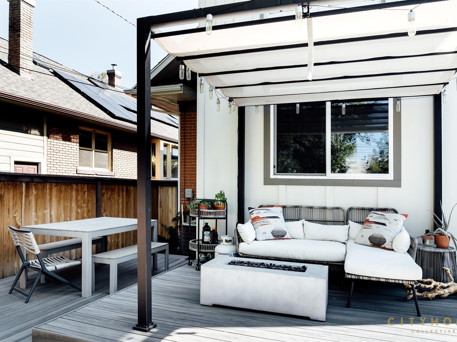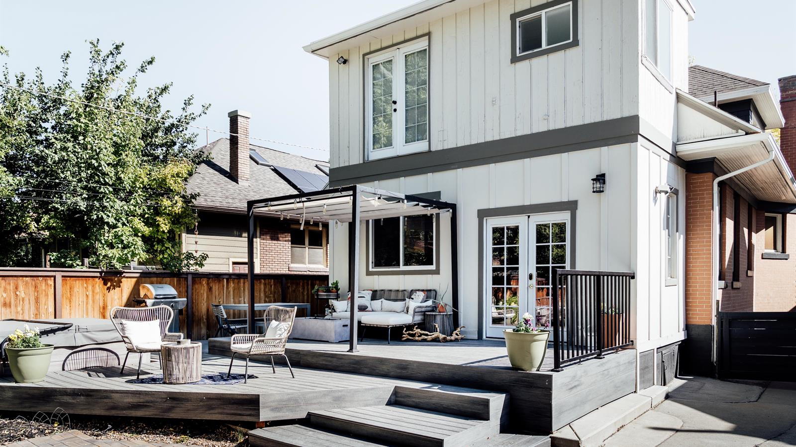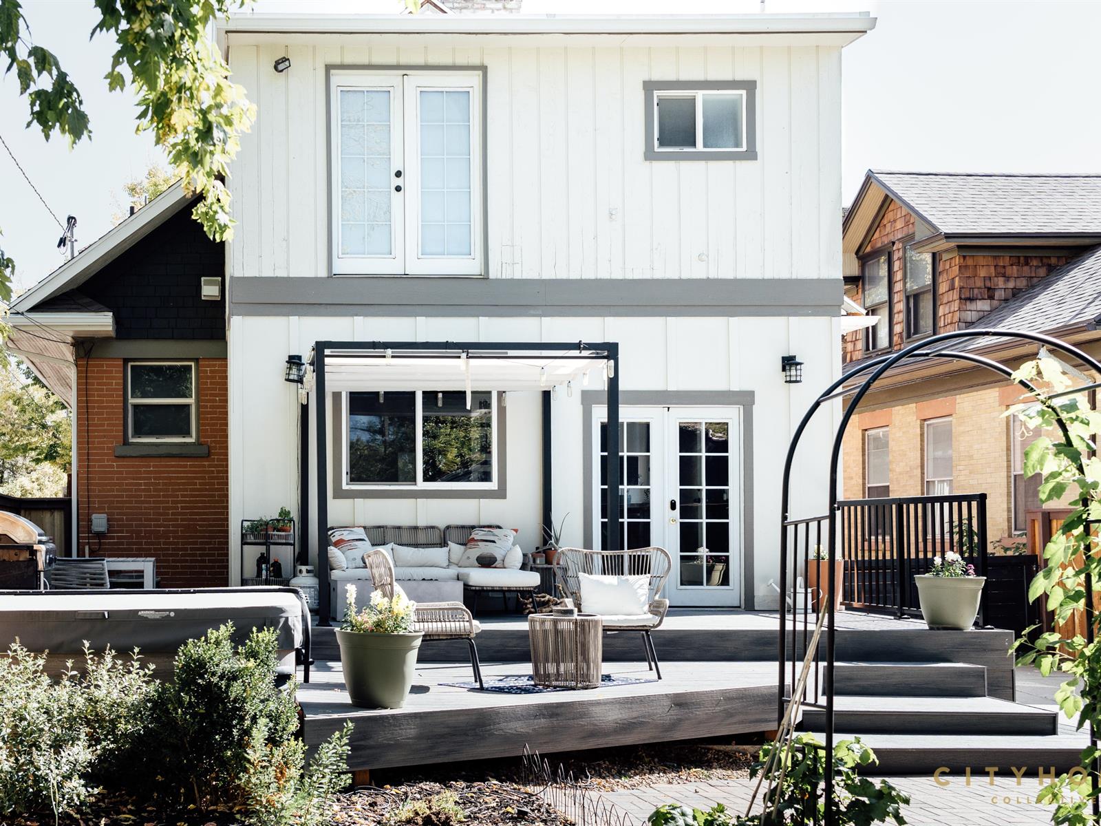Upstairs, the primary suite is bright and spacious and includes its own en suite bath and private deck (ideal for lazy mornings spent sipping cappuccinos over a good read).
