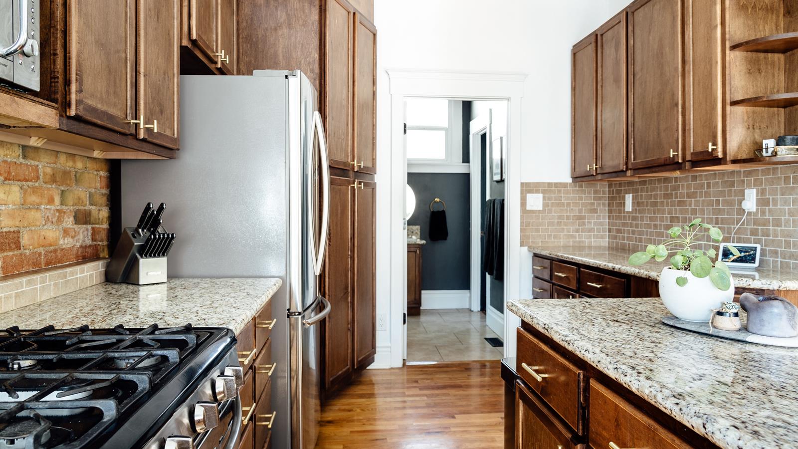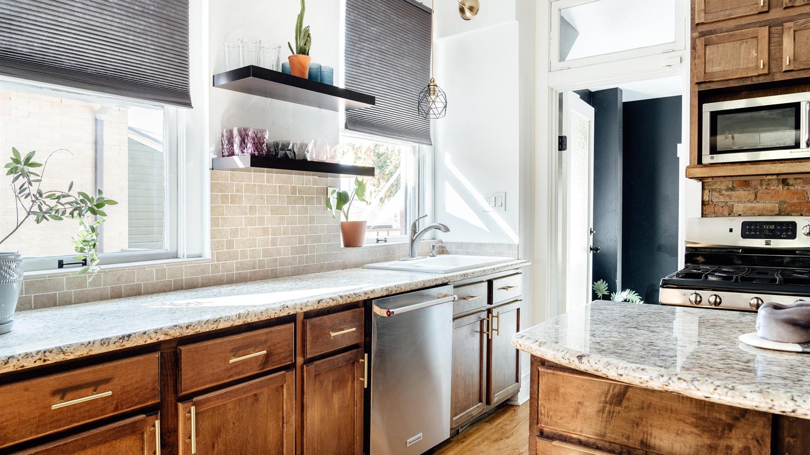 The kitchen has been smartly updated and now boasts granite counters and stainless steel appliances.