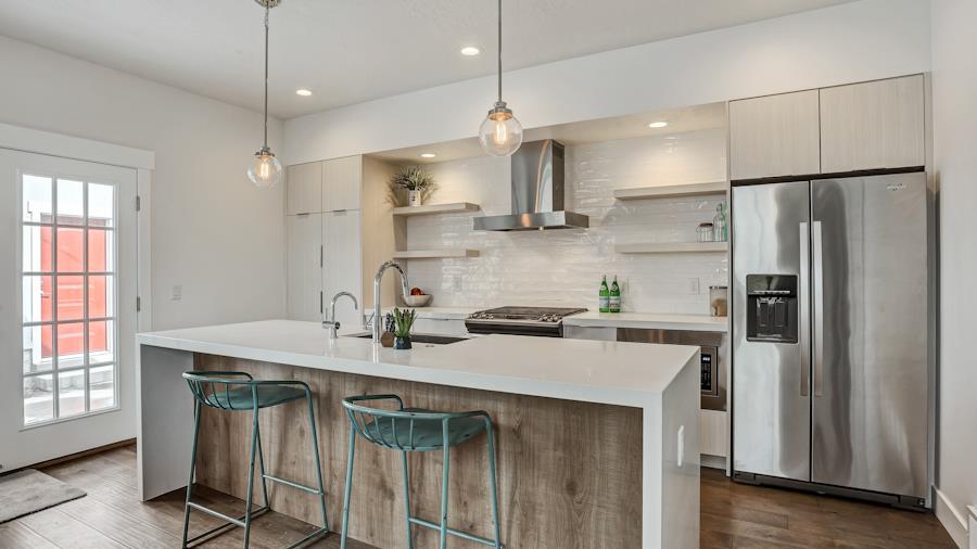 The exterior is sporting curb appeal in spades, and that bright-n-tidy kitchen makes us dream of brunches and bake-offs to come.