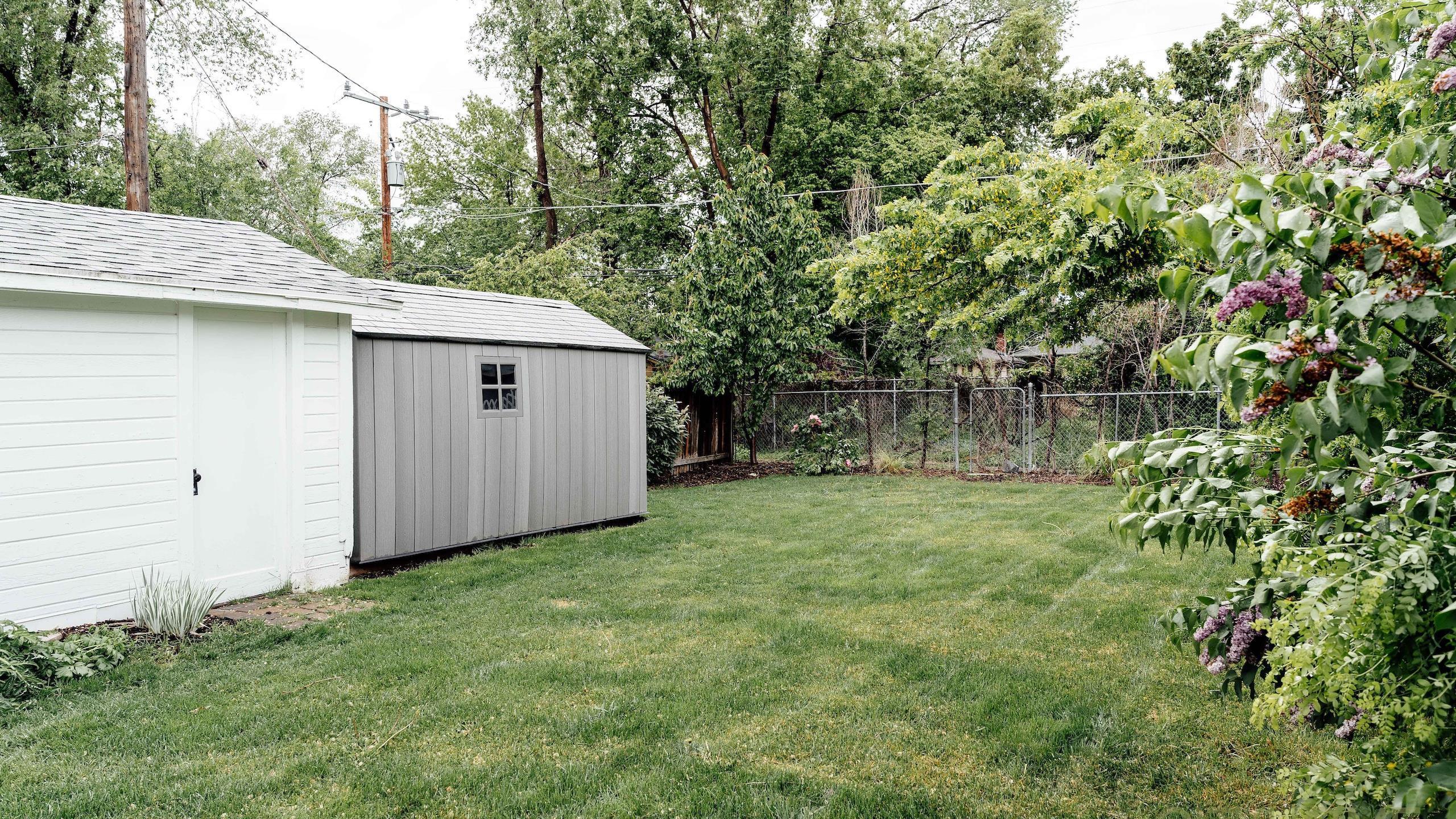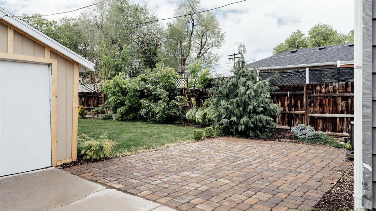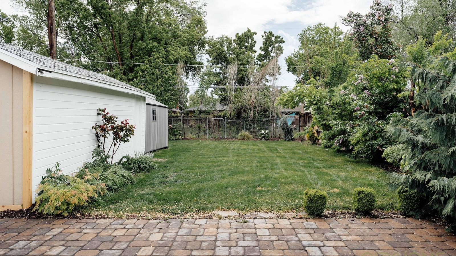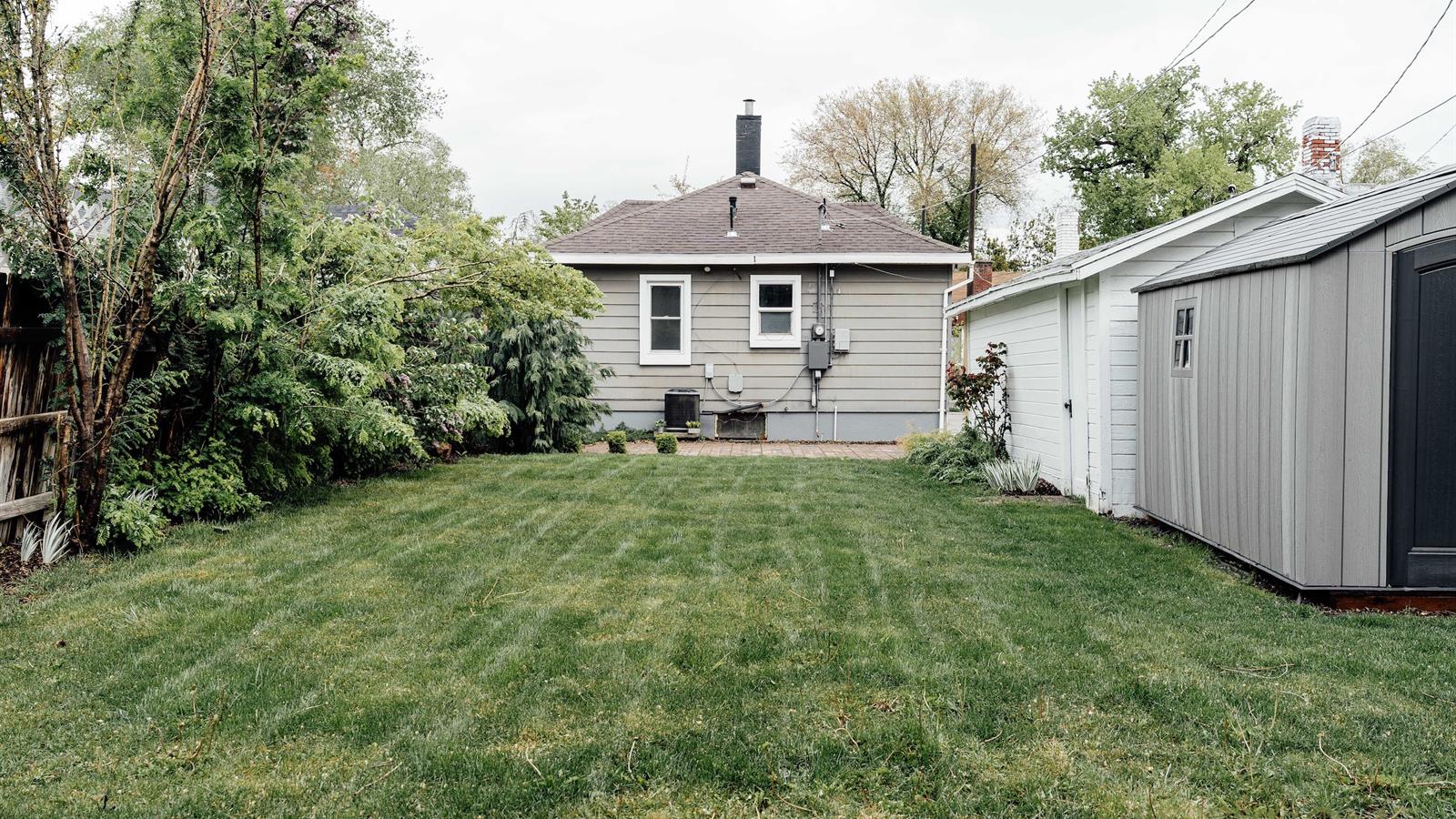 The front and back yard have lovely blooming peony flowers, Japanese pines and growing plants that frame the fence and home very nicely. The backyard also has a nice stone patio that reaches out to the grass where classic, projector movie nights have been had on the white painted garage.