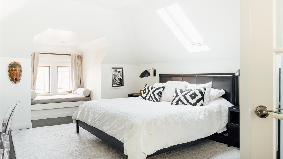 The main suite, with dramatic ceiling lines and a cozy, romantic feel, sits upstairs, and additional beds, bath, and laundry can found downstairs.