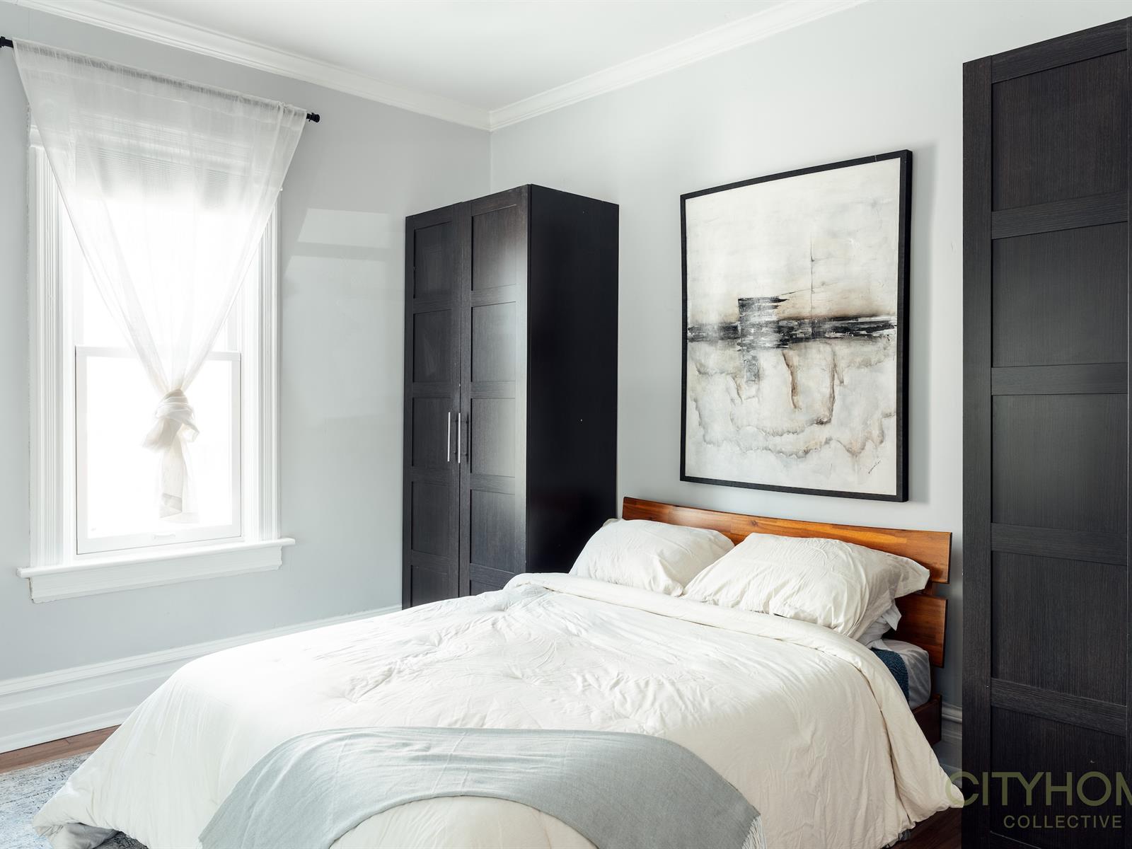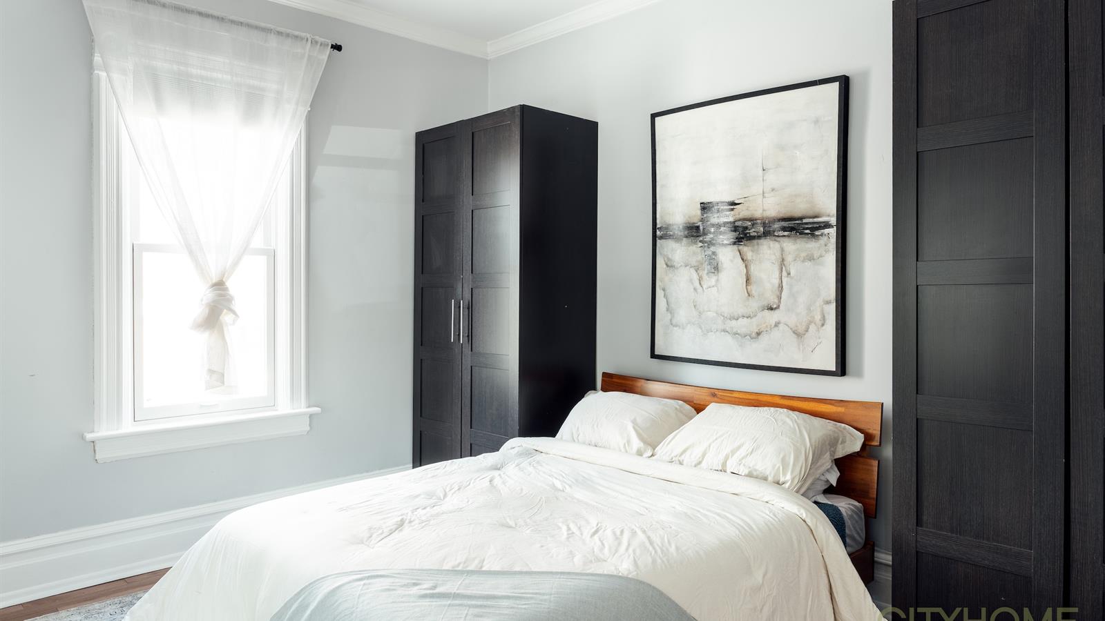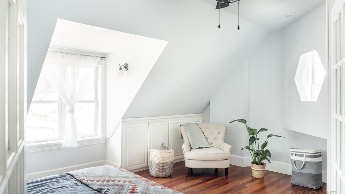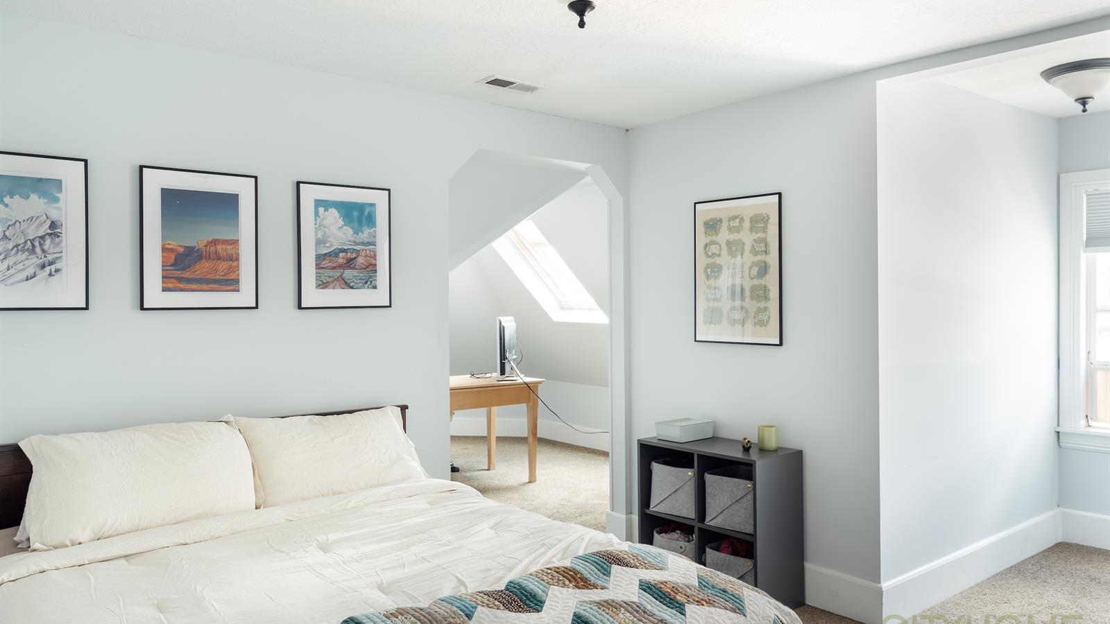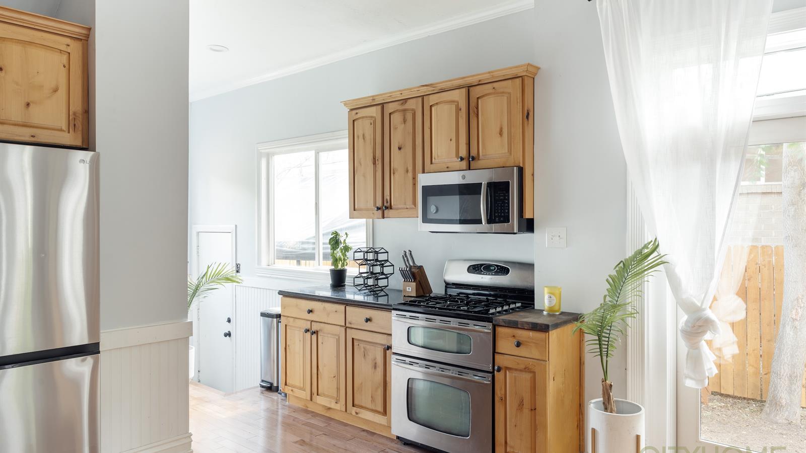 The owner has made several thoughtful improvements throughout. In the kitchen there are new appliances, cabinets and countertops, and the bathroom boasts a new tub and vanity. The main floor has been opened up for better functionality, and we love how airy the rooms feel– those 9’ ceilings and tall windows allow in so much light.