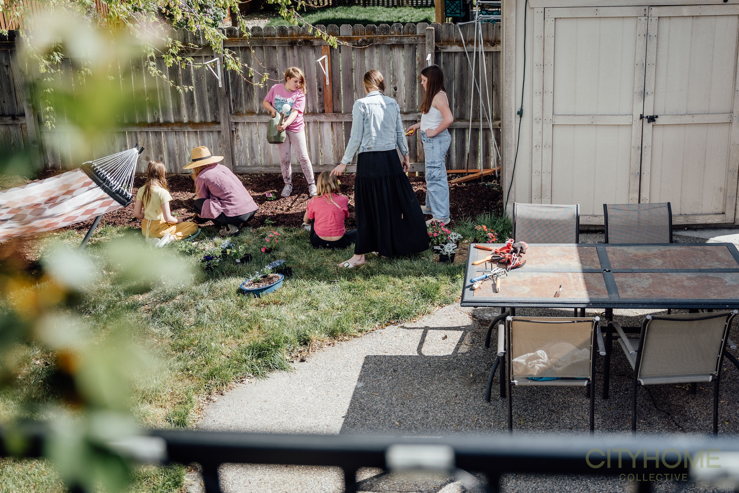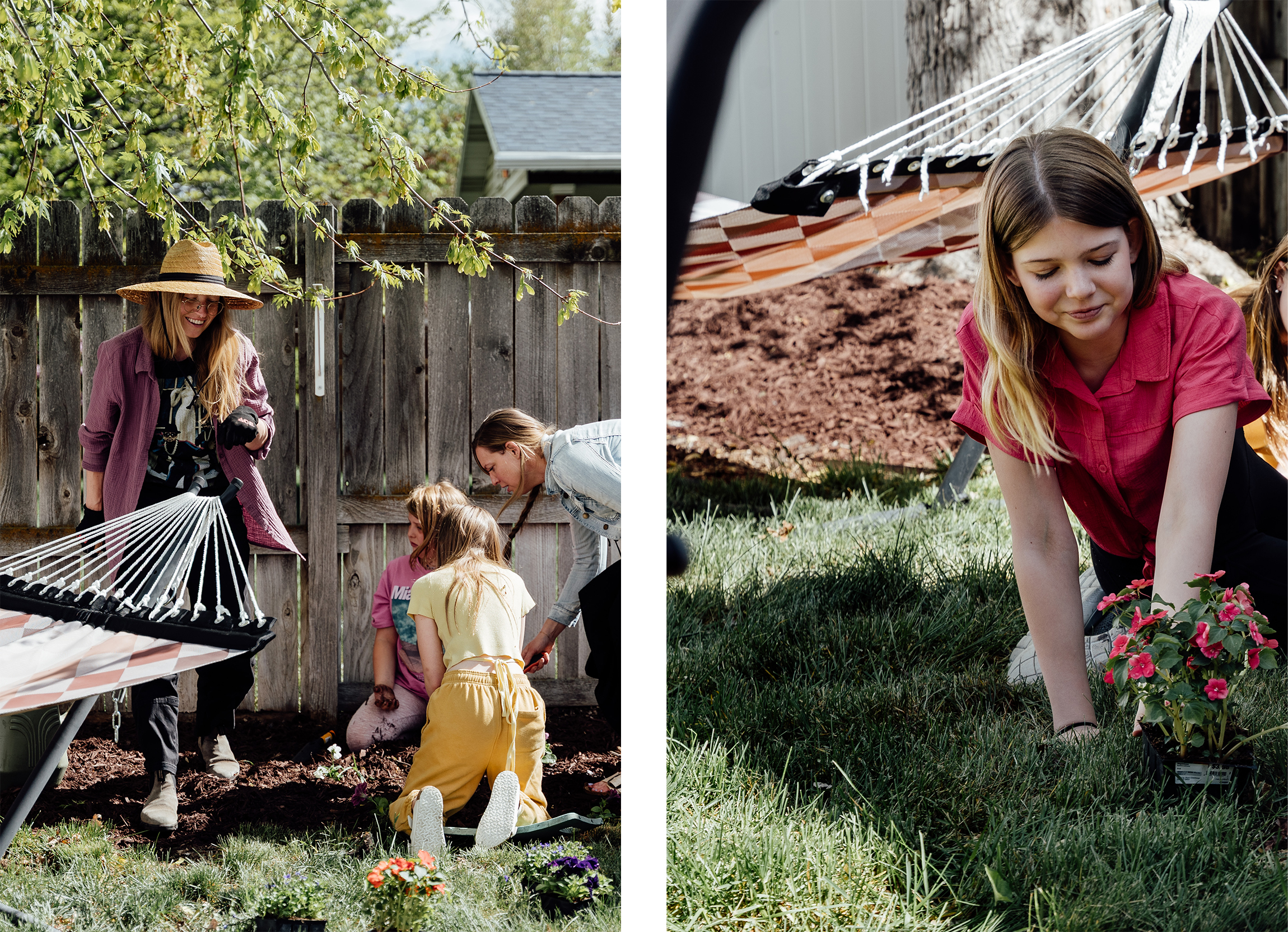 The grass is soft, the fruit trees are blooming, and the space makes room for it all—bare feet, bright petals, a dozen lemonade refills, and the kind of laughter that lingers long after the sun dips low.