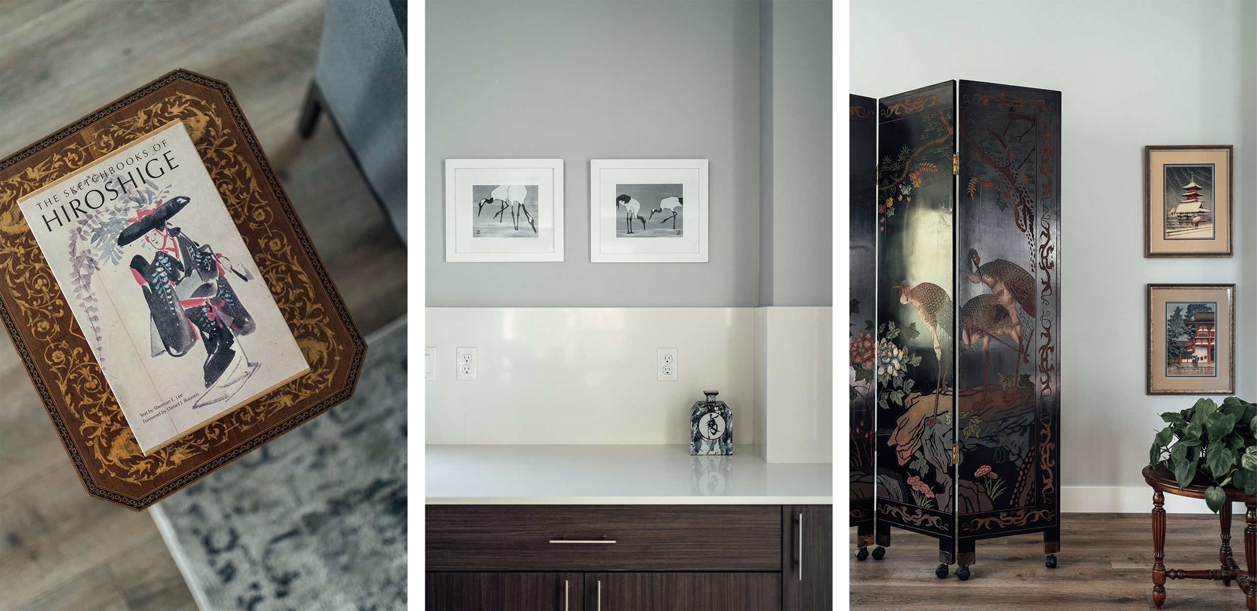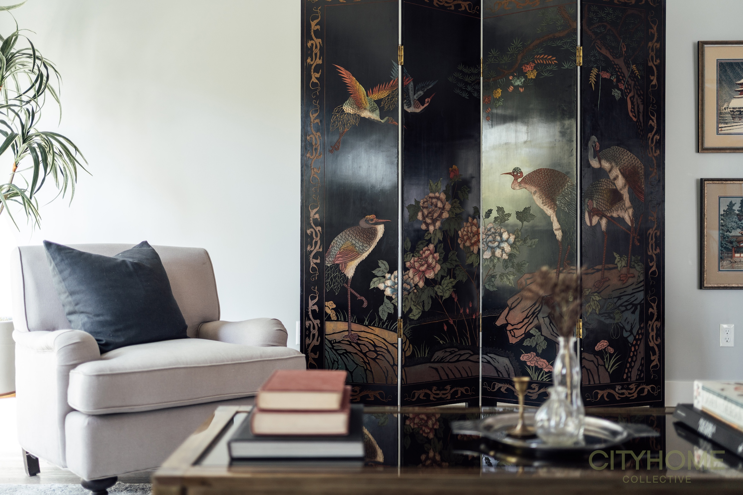 In interior design, the concept of a “hero” element involves choosing a focal point for a room that builds a story and defines an identity. This statement piece can be just about anything - a work of art, antique furniture piece, stand out rug, or even an inherent architectural feature. It’s something that’s a just little bit extra special, which sets the tone and immediately draws your eye. My client, who is an avid art collector and world traveler, temporarily left behind a stunning, hand-painted Japanese screen in this space, unsure if it would fit in her new home.