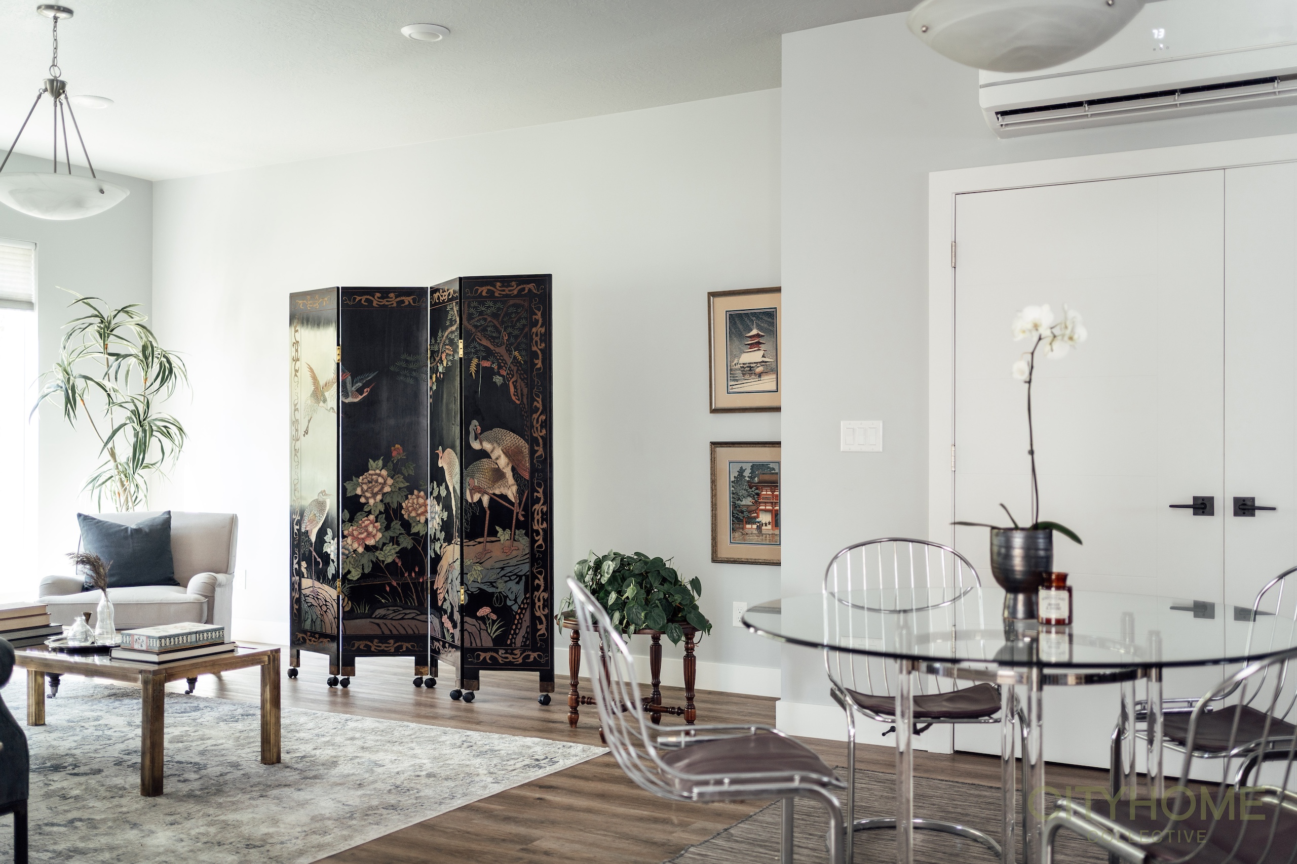 This luxury townhome, located near the Maven District in downtown SLC, is a sophisticated, serene space – from its pleasing paint colors to elegantly upgraded light fixtures. Built in 2021, it’s a newer home that’s also been immaculately maintained by its only owner, who adorned it with art, heirloom furniture and unique artifacts during her time there. Having already moved her belongings into a new home (apart from a few, special pieces…) this space was suddenly devoid of the creative warmth that had shaped its story, and called for a curated staging approach to bring it back to life.