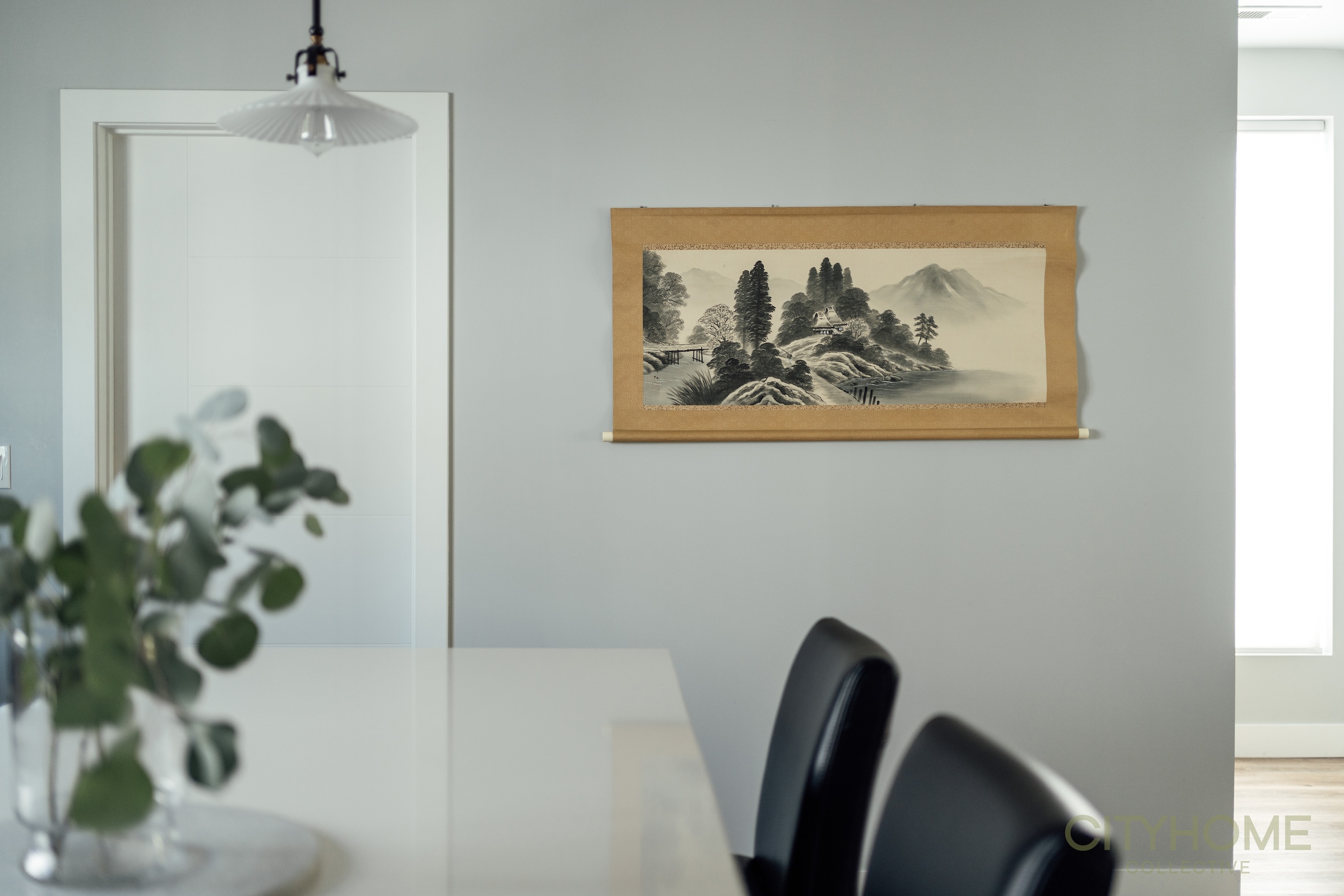 With these intentionally placed pieces, the resulting aesthetic is minimal and simplistic, yet warm and inviting with the addition of layered textiles and softer elements. Building this space inspired reflection on the many beautiful aesthetic concepts in Japanese culture, such as the concept of “Ma,” which relates to creating pauses within a space that allow its contents to breathe. Just as important as the art on the walls, it’s the unoccupied moments that bring balance and harmony to this home, creating space in which we can imagine its next chapter.