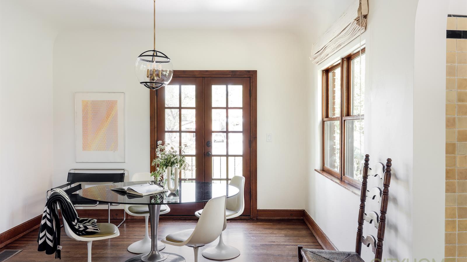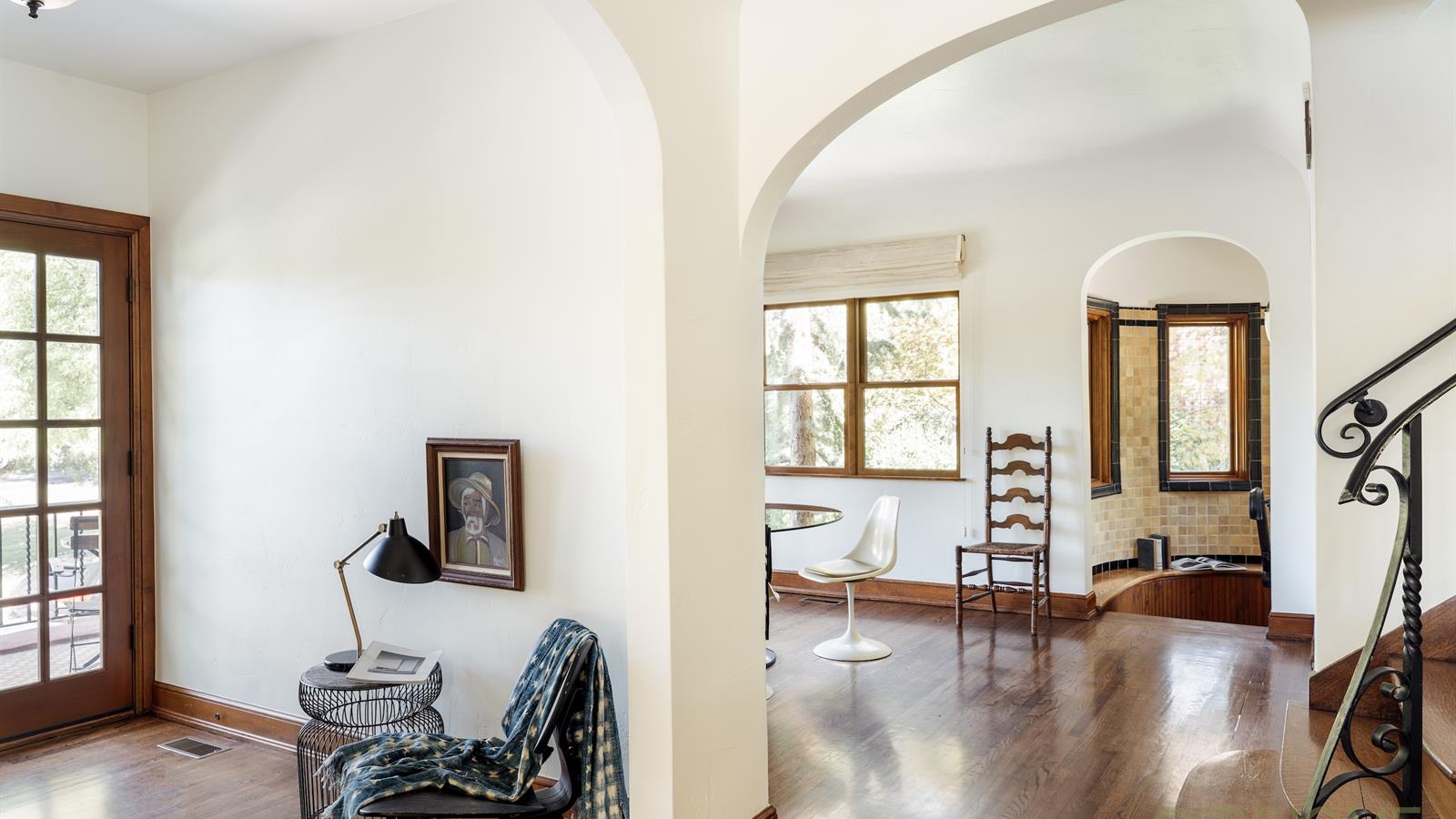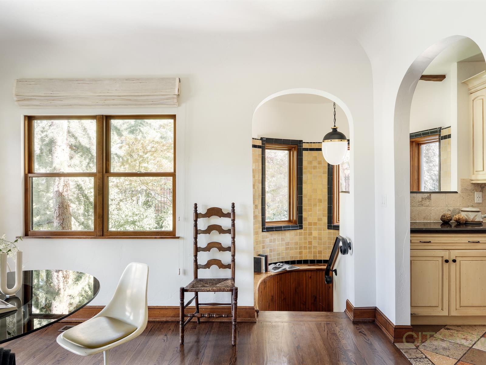 Infused with French Revival influences—stained glass windows, garden doors, exposed beams, the graceful sweep of hardwood stairs, and a kitchen kissed with Parisian flair—every space feels intentional, intimate, and deeply romantic. Meticulous care has preserved its character, while thoughtful updates ensure modern comfort.