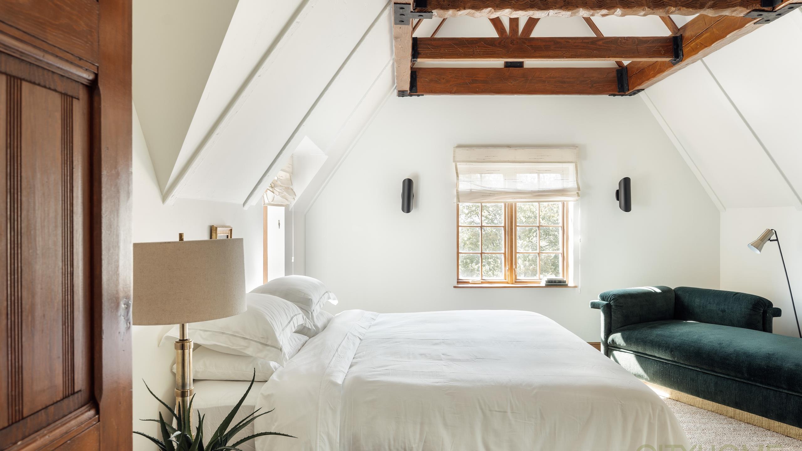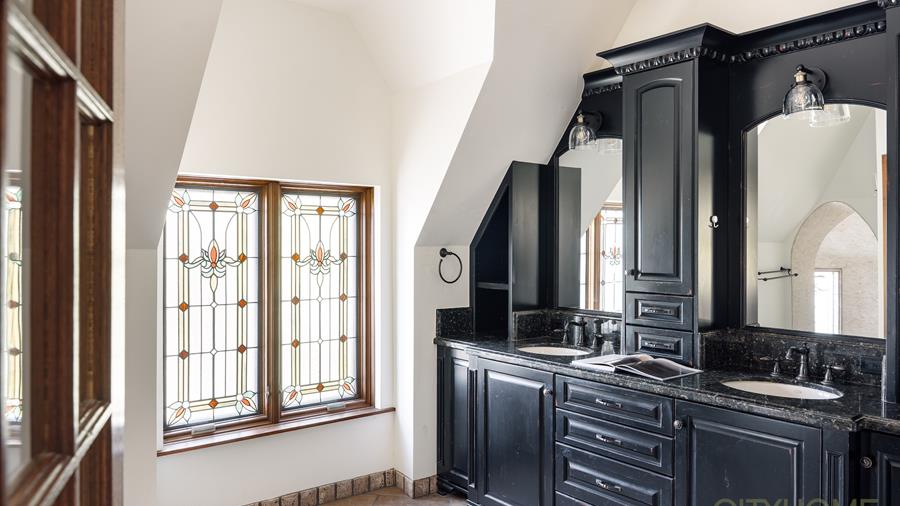 Upstairs, the owner's suite invites retreat and reflection. Generous in scale, it features an en suite bath where a turreted shower evokes the whimsy of a European castle.