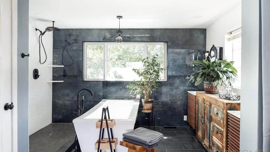 Upstairs, what was once a traditional layout has been reimagined as a dreamy primary suite with a spa-like atmosphere.