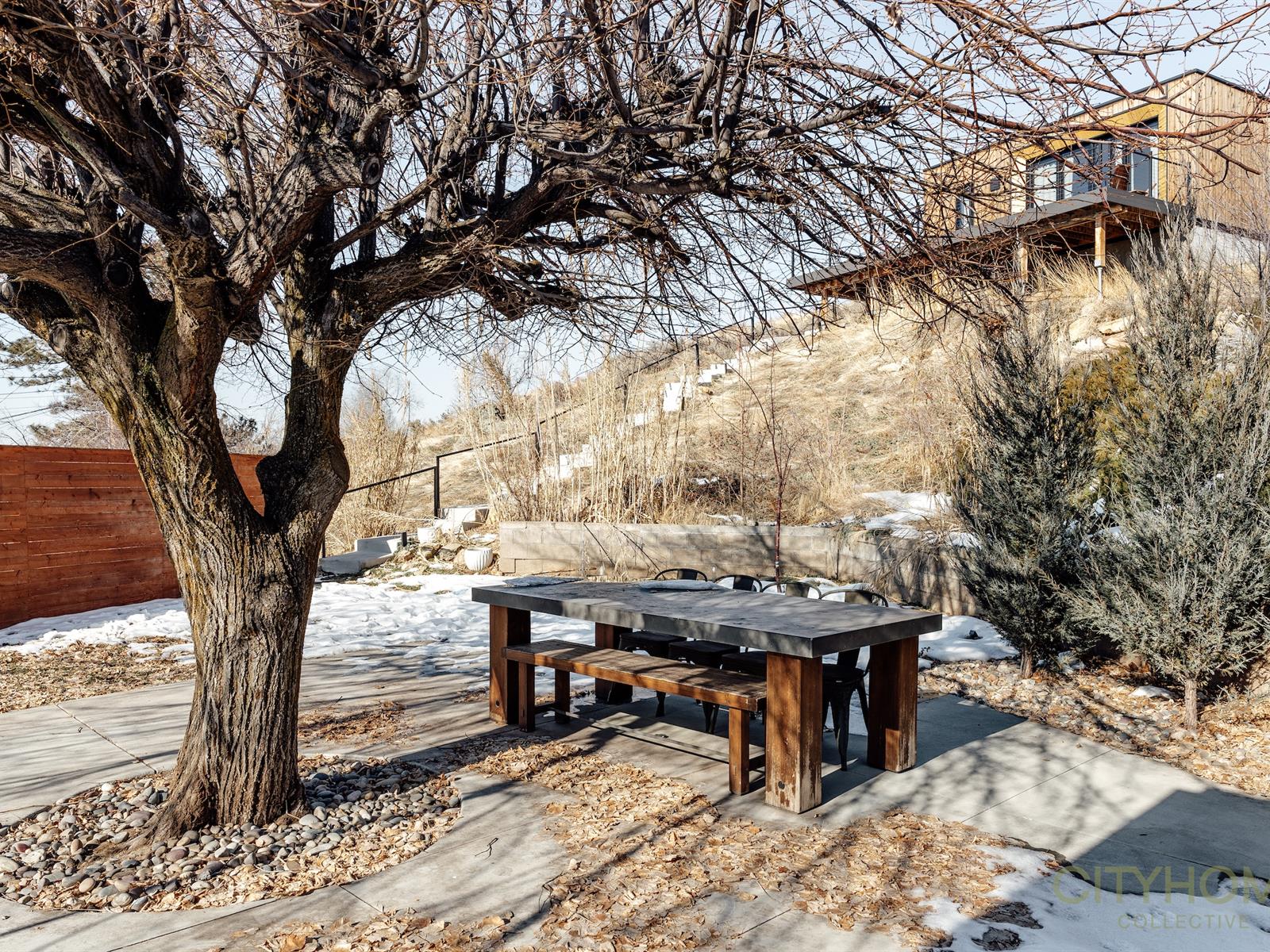 The home sits on nearly half an acre. It's oriented to maximize its south westerly exposure. Afternoons are bathed in golden light while outside a grand lindon tree throws open her arms, offering shade.