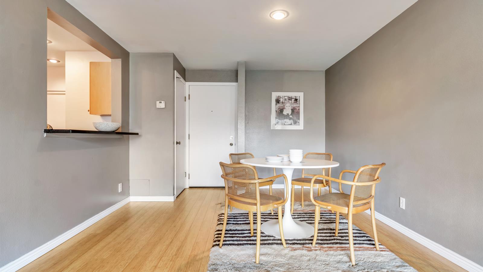 The interior is immaculate, and the kitchen’s been updated, to boot. The hardwood floors are a nice touch, say we, and you certainly can’t go wrong with a private balcony (perfect for post-work, outdoor hangs).