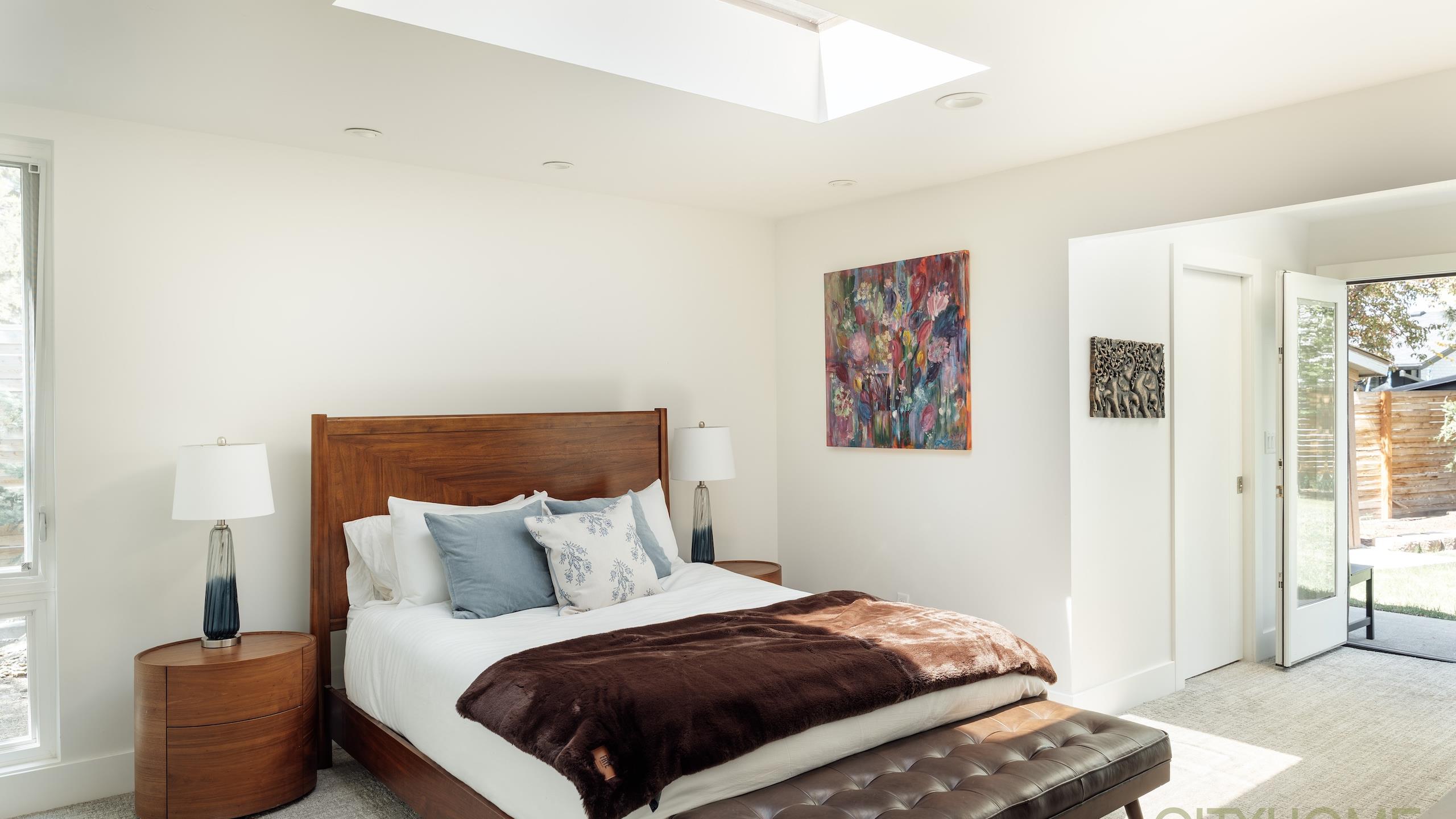 With just over 2,200 square feet of mindfully-laid out living space, the home exemplifies all the elements of a Ron Molen home: oriented to maximize privacy and natural light; constructed with integrity; designed for everyday living. The interior of the home recently underwent a complete renovation, and its transformation is stunning. The primary bedroom now comes with an en suite bath with a large tub.